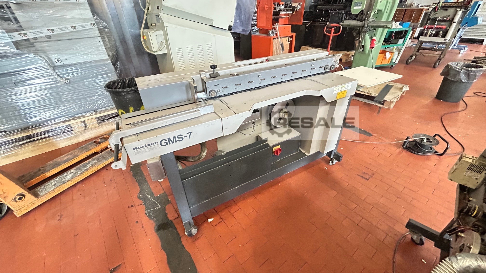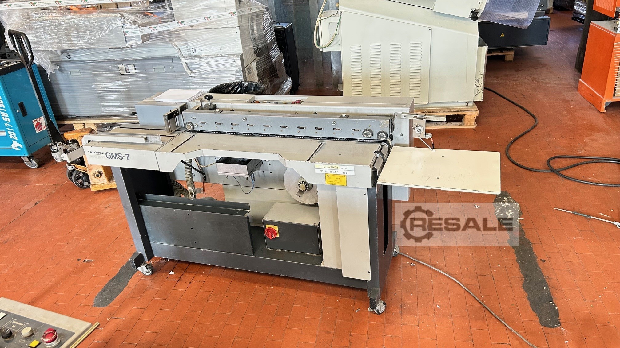 HORIZON GMS 7 -Automatic book spine taping machine Year 1996 -Length of Spine: Manual Feed (80 mm -3.1″ to No Max. Limit) or Automatic Feed (180 mm- 7.1″ to 320 mm -12.5″) -Book Width: Manual Feed (60 mm- 2.4″ to No Max. Limit) or Automatic Feed (128 mm- 5″ to 273 mm- 10.7″) -Taping ...