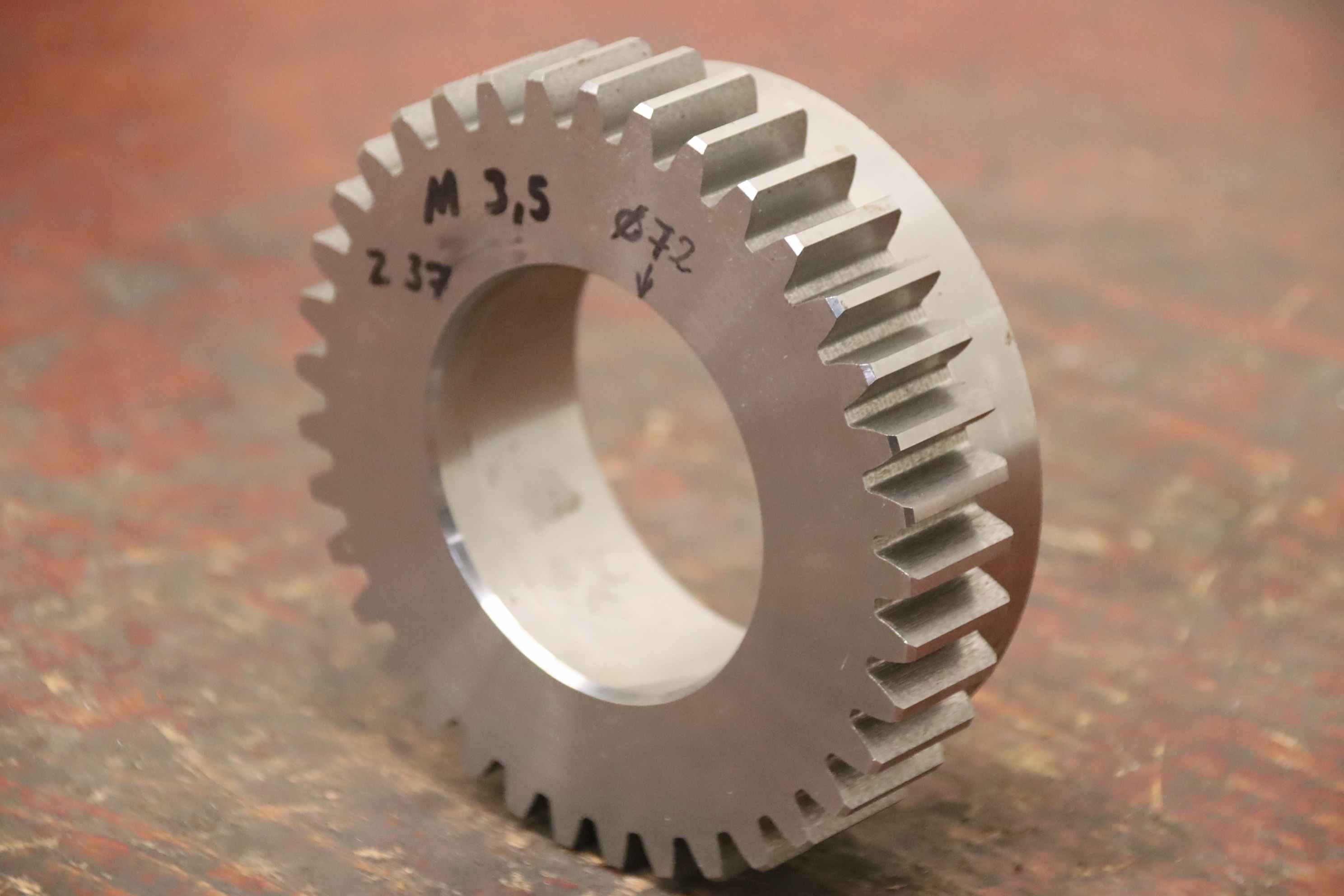 gear, gears, gear shaft, pinion shaft, spur gear, spur gear -Gear shaft: straight-toothed pinion shaft -Gear: Diameter Ø 136 mm / 37 teeth -Tooth width: mm -Shaft holder: inner Ø 72 mm -Bolt circle: Ø 100 mm M8 -Dimensions: see photos -Number: 6x gear shaft available -Price: per piece -Dimensions total: Ø 136 x 42 mm -Weight: 5.2 kg/piece