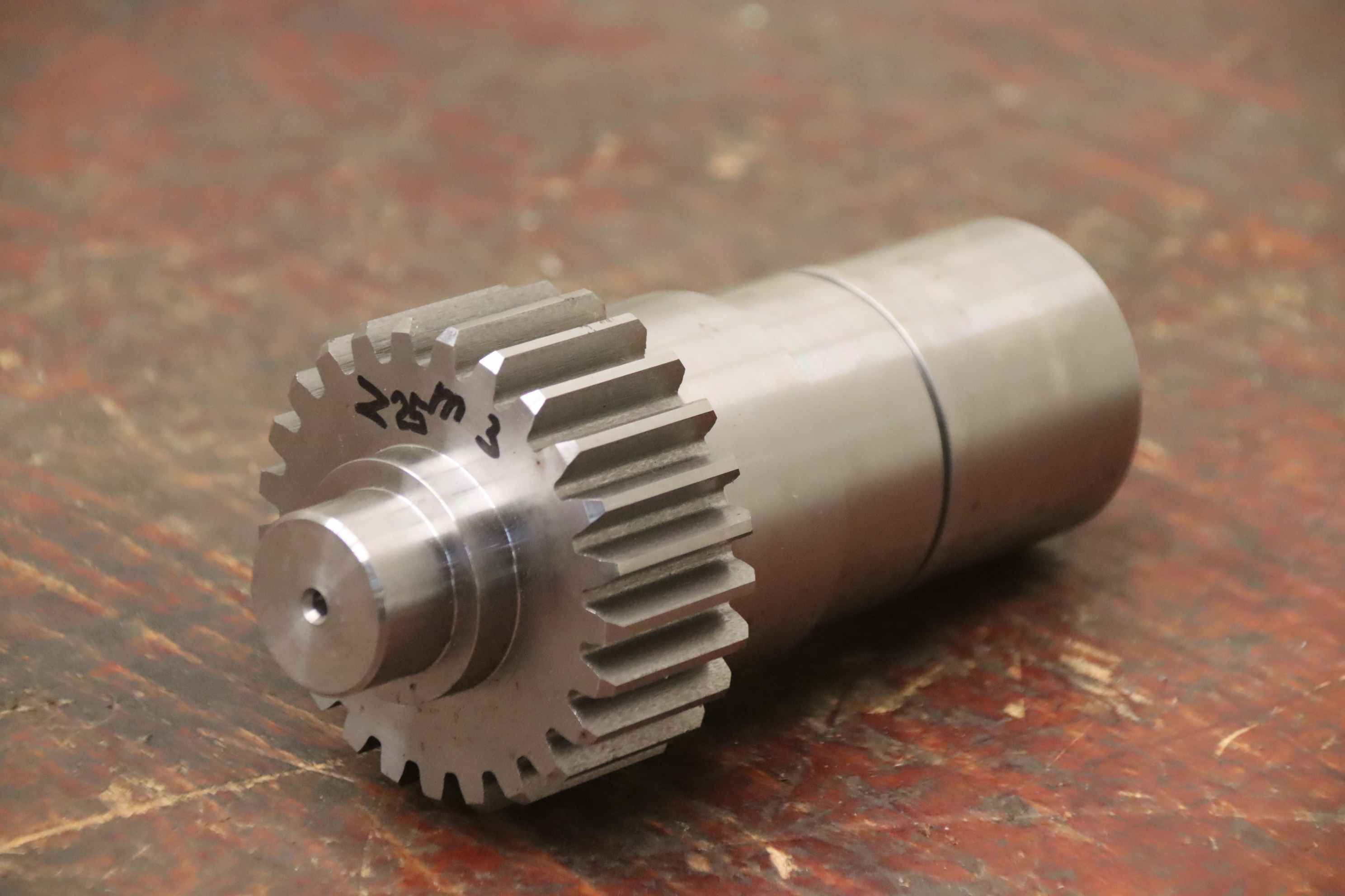 gear, gears, gear shaft, pinion shaft, spur gear, spur gear -Gear shaft: straight-toothed pinion shaft -Gear: Diameter Ø 81 mm / 25 teeth / Module 3 -Tooth width: mm -Shaft: Ø 60 mm / inner Ø 38 mm -Dimensions: see photos -Number: 7x gear shaft available -Price: per piece -Dimensions total: Ø 81 x 175 mm -Weight: 3.1 kg/piece