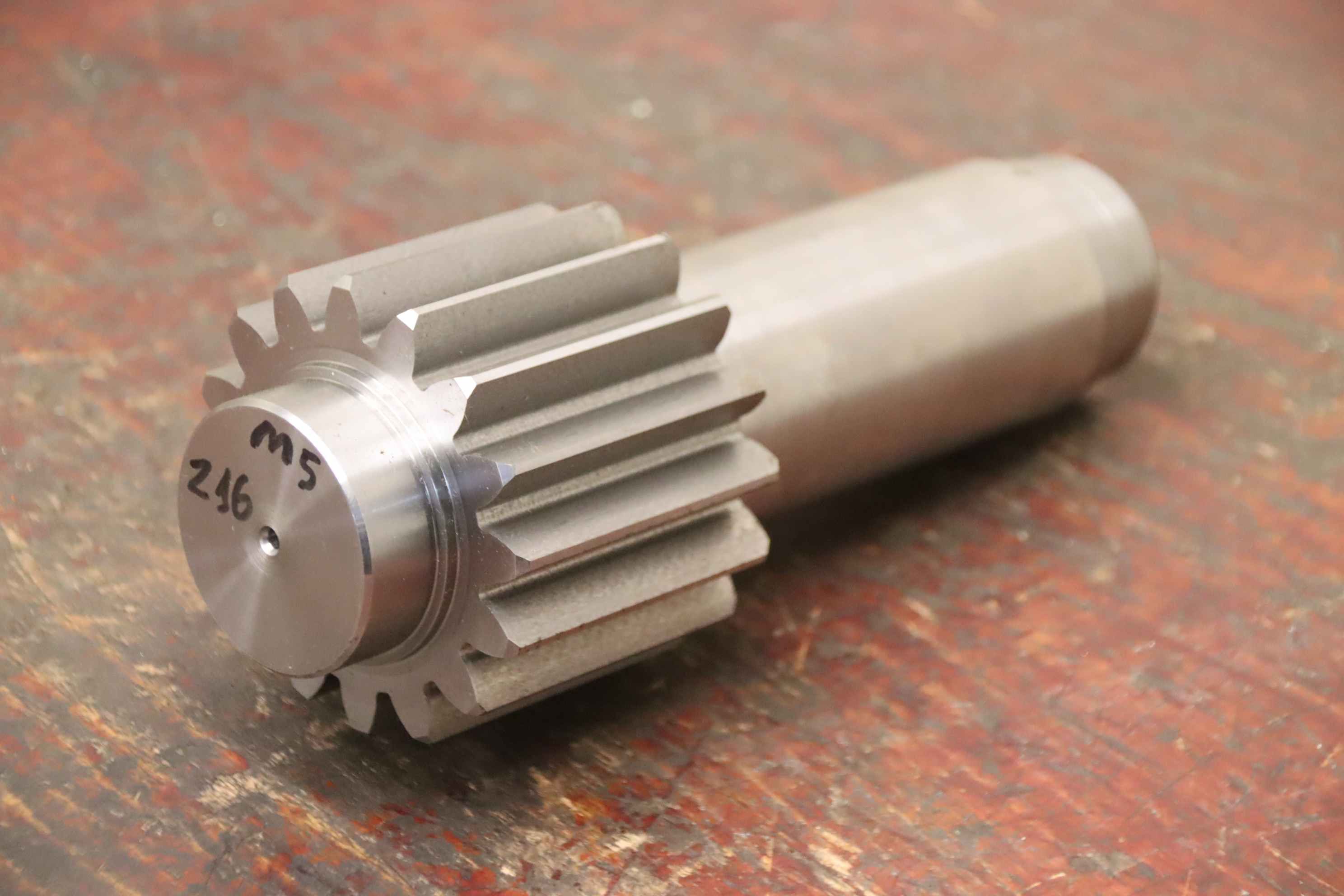 gear, gears, gear shaft, pinion shaft, spur gear, spur gear -Gear shaft: straight-toothed pinion shaft -Gear: Diameter Ø 95 mm / 16 teeth -Tooth width: mm -Shaft: Ø 60 mm -Dimensions: see photos -Number: 14x gear shaft available -Price: per piece -Dimensions total: Ø 95 x 243 mm -Weight: 6.4 kg/piece