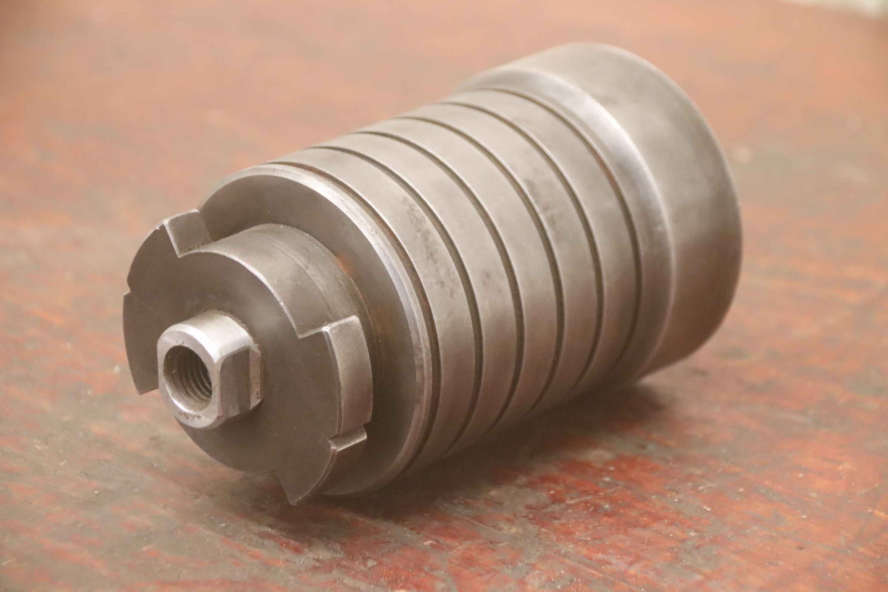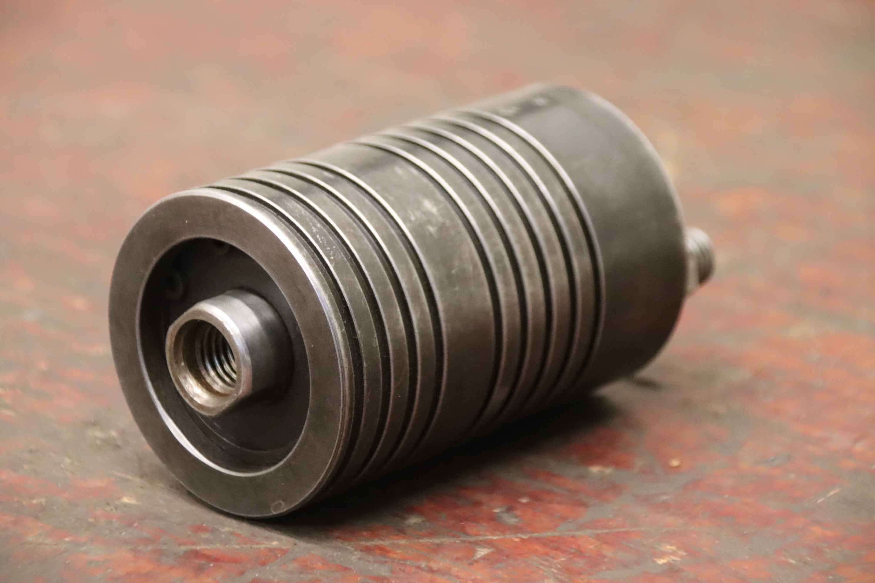 Clamping cylinder, hydraulic clamping cylinder, hydraulic clamp, pneumatic clamp, air cylinder, clamping cylinder for power chuck, hydraulic cylinder-Manufacturer: WMW, clamping cylinder stroke 15 mm-Type: 25 30-7312-Shaft Ø 14 mm-Number: 12x clamping cylinders available-Price: per piece-Dimensions: Ø 50 x 96 mm-Weight: 1.2 kg/piece
