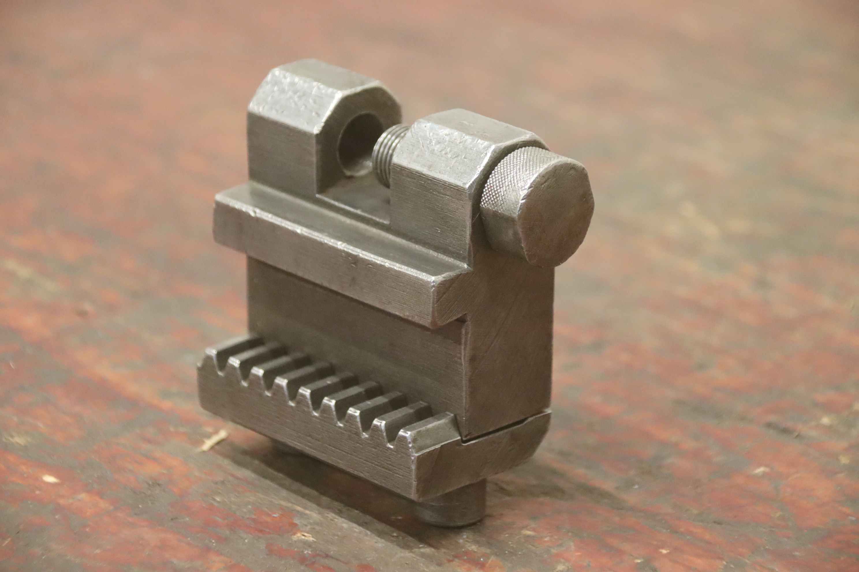 Steel holder, clamping plate with T-slot-Clamping tool: Stop for lathe 2 pieces-Dimensions: see photos-Shipping/Price: complete-Dimensions: 90/45/H95 mm-Weight: 1.5 kg/piece