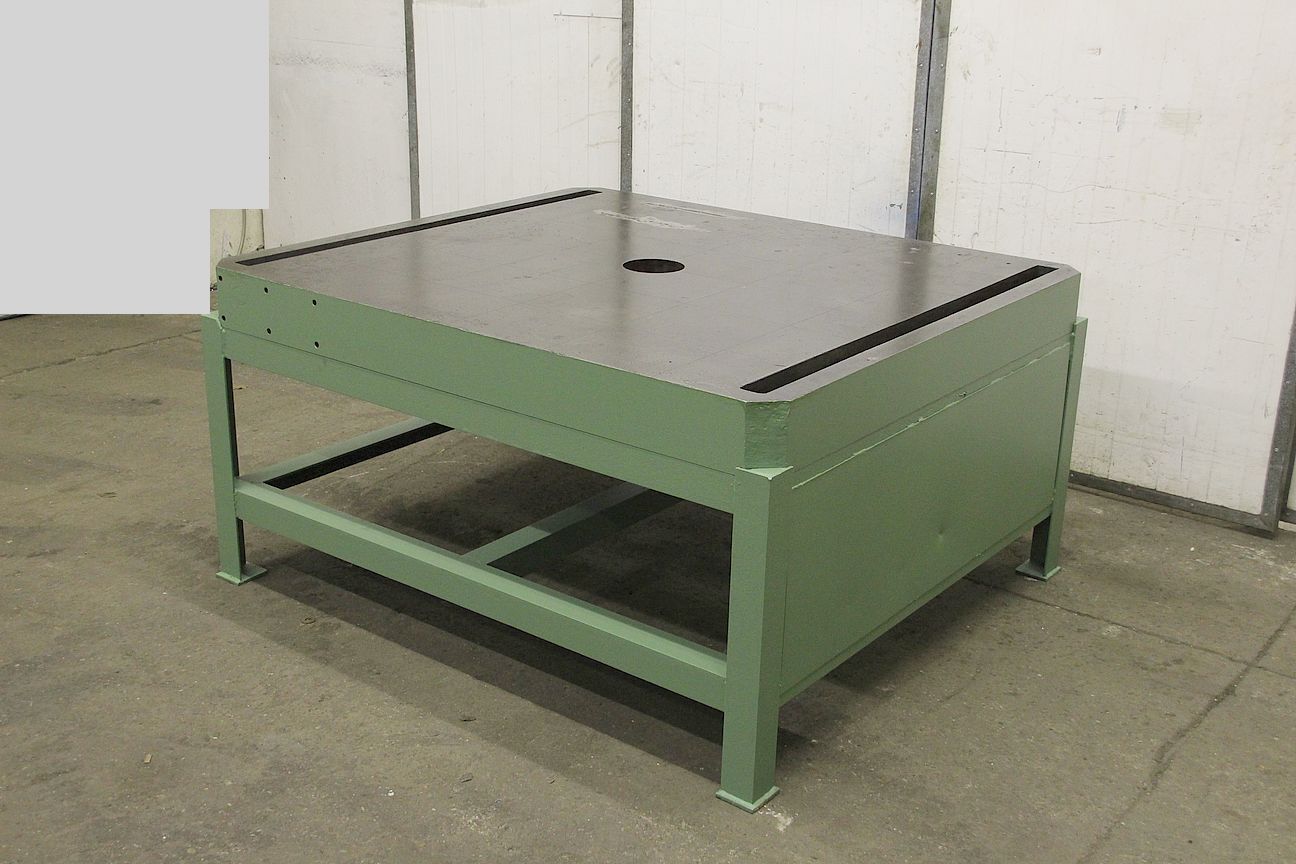 Clamping plate, marking-out plate, measuring plate, measuring table, welding table, welding table, straightening plate -Width: 1515mm -Length: 1725mm -Height: 865mm -Plate thickness: 30 mm -Plate is with: support ribs -Center bore: 100 mm -Right and left recess: 55 x 1385 mm -Number: 1x plate available -Transport dimensions: 1725/1515/H865 mm -Weight: 2200kg