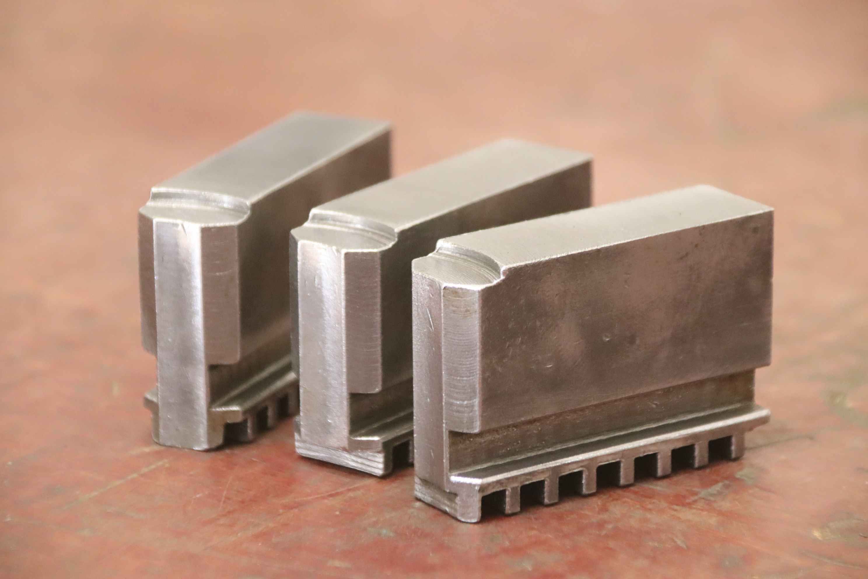 Interchangeable jaws, top jaws, three-jaw chucks, segment jaws, clamping jaws, step block jaws, step top jaws, block jaws, base jaws-Top jaws: Jaw set for three-jaw lathe chuck, soft-Jaw width: 20 mm-Dimensions: see photo technical drawing-Total dimensions: 65/60/H45 mm-Total weight: 1.1 kg