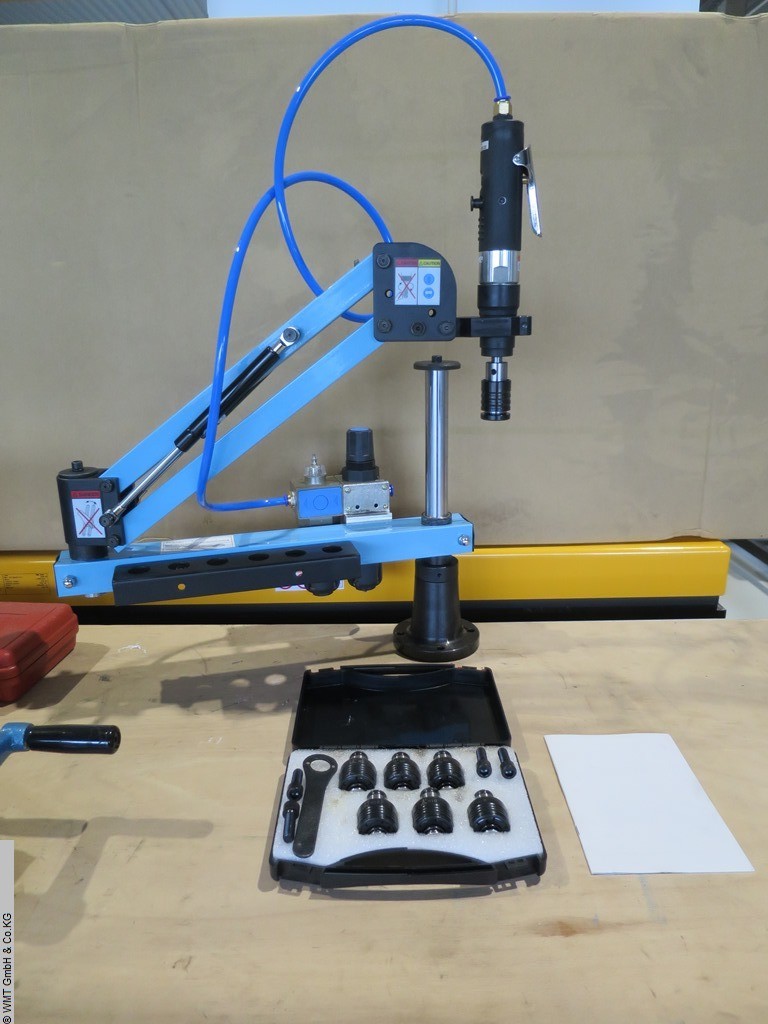 thread dia.: M3 - M12 mm: 400 U/min.: 25 Nmair pressure: 6 - 8 barworking area: Radius 1000 mmweight of the machine ca.: 12 kgDemonstration machine!Pneumatically driven tapping machine for M3 - M12 thread with:- stable and flexible working arm.- 6 pcs. Quick-change chuck with slip clutch.Documentation in English optional:- Clamping table with T-slots clamping surface 900 x 600mmThe data for this ad was created with ModulMWS - the software solution of LogoTech oHG.
