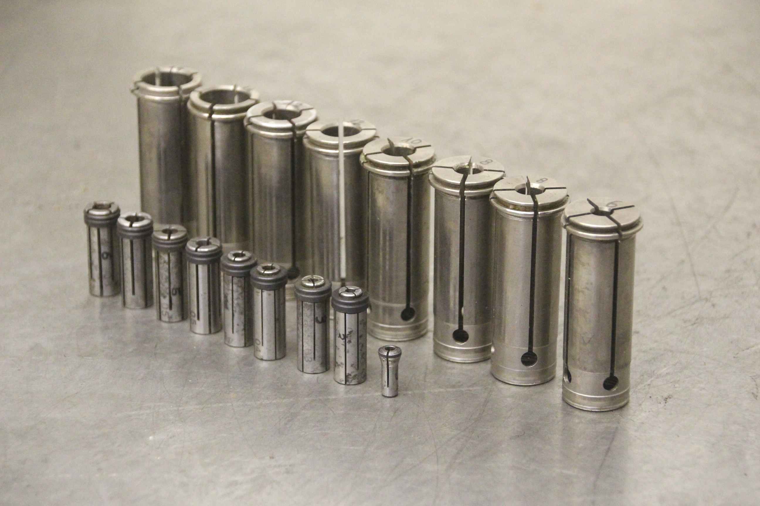 Clamping head, pressure collet, collet sleeves, collet, tool holder, tool holder, milling holder, milling tool, adapter sleeves-Manufacturer: NT, adapter sleeves 17 pieces-Sizes: Ø 3-16 mm, see photos-Sale: only for sale as a whole-Dimension total: 70/135/H60 mm-Weight: 0.7 kg