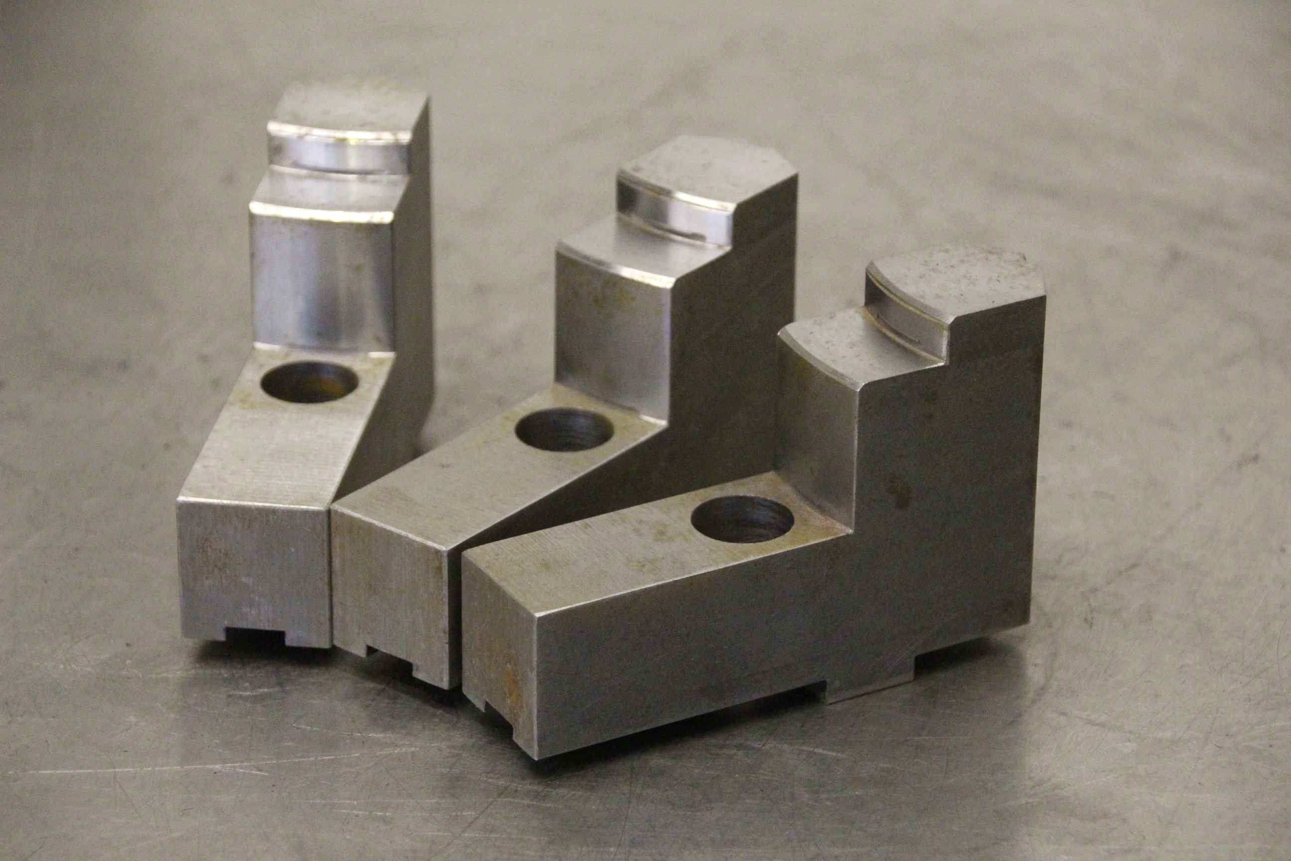 Interchangeable jaws, top jaws, three-jaw chucks, clamping jaws, step block jaws-Top jaws: soft clamping jaws 1 set = 3 pieces-Hole spacing: 40 mm-Width: 30 mm-Dimensions: 120/90/H80 mm-Weight: 3.4 kg