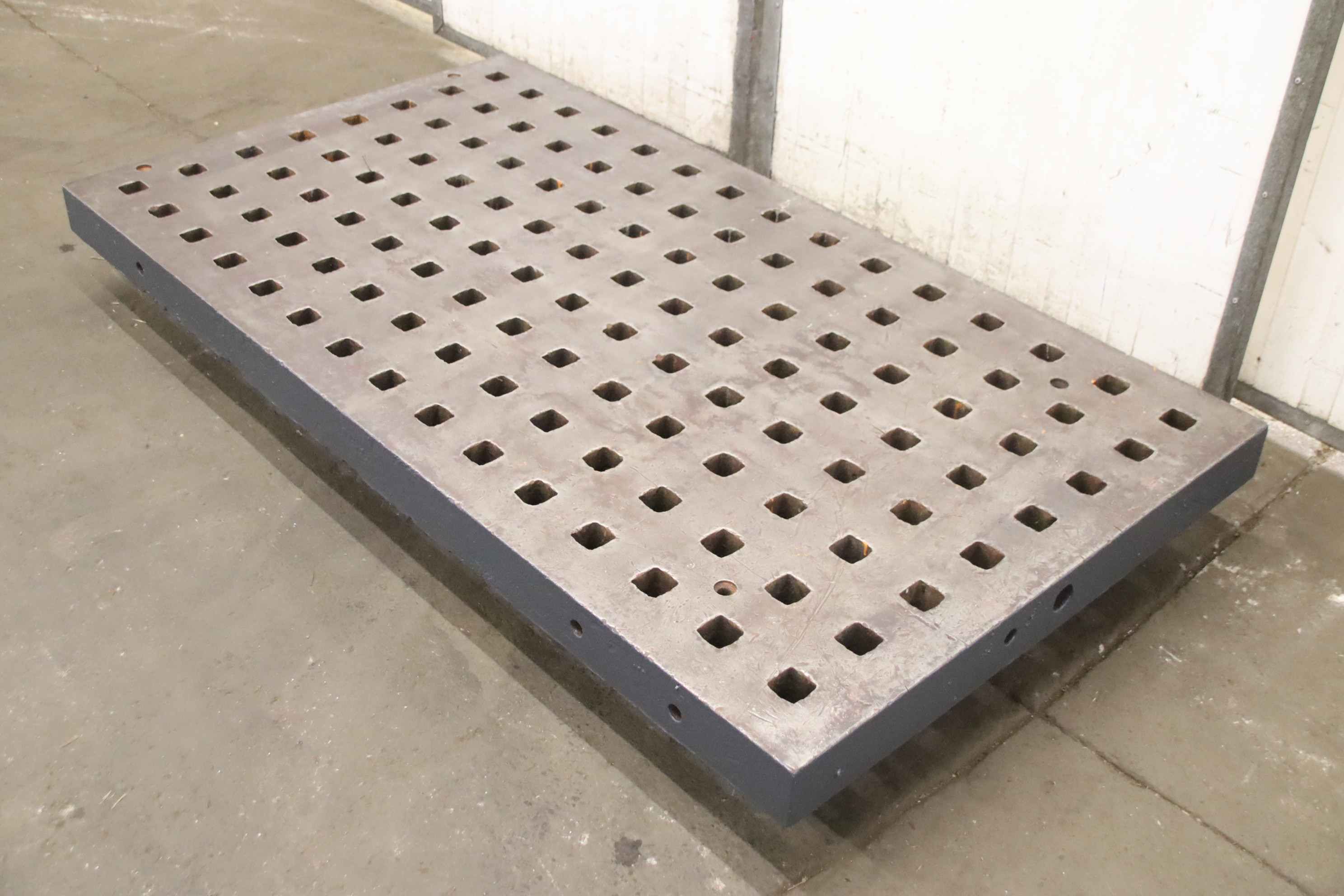 Clamping plate with T slots, plate field, welding table, welding table, plate drilling machine, T-slot plate,-Clamping plate: with locking openings-Clamping surface: 1950 x 1075 mm-Height: 100mm-Stake-out opening: 47 x 47 mm-Quantity: 10x clamping plate available-Price per piece-Transport dimensions: 1950/1075/H100 mm-Weight: 1300 kg