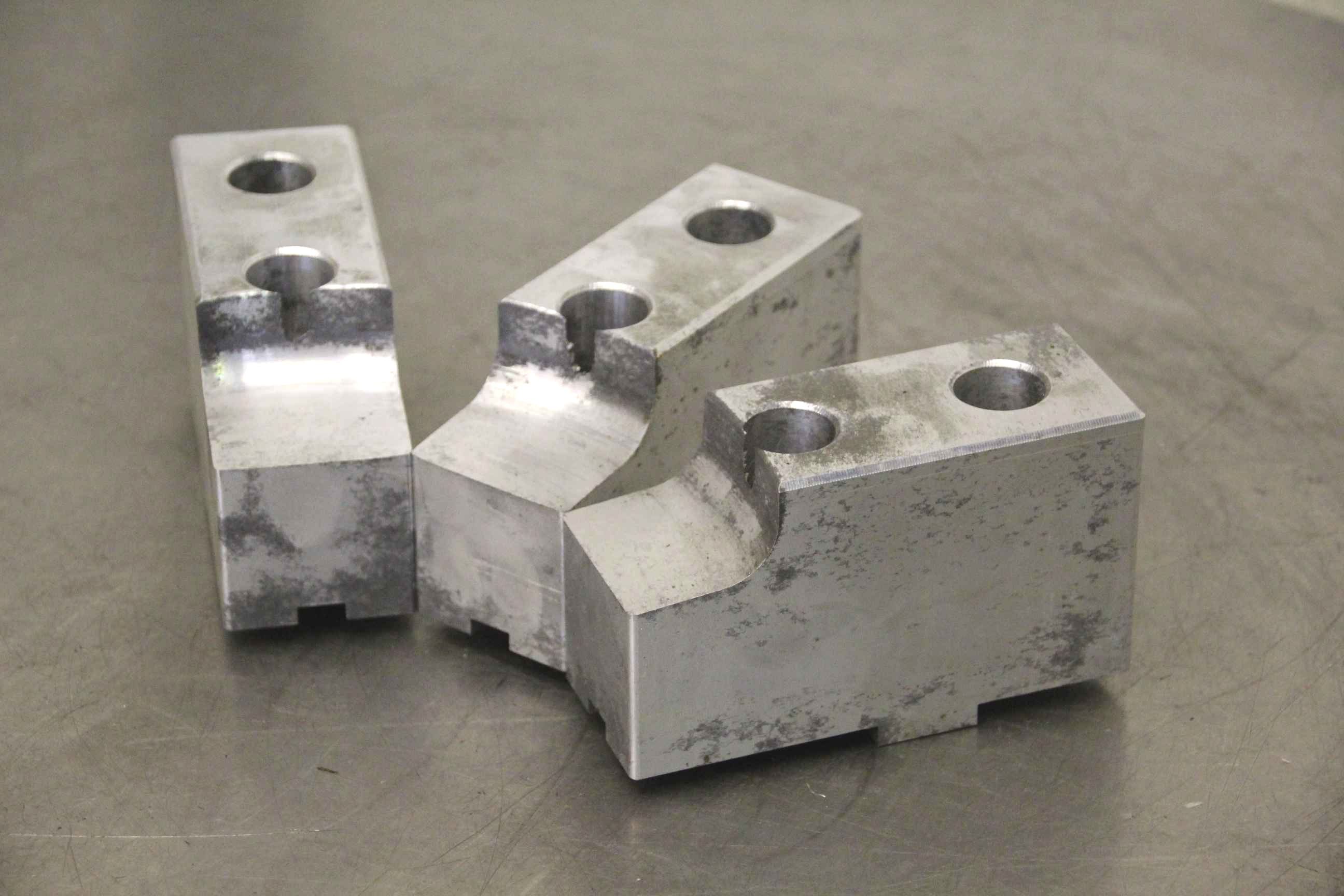 Interchangeable jaws, top jaws, three-jaw chucks, segment jaws-Top jaws: for power chucks-1 set: soft jaws, aluminum-Hole spacing: 54 mm-Dimensions: 160/190/H110 mm-Weight: 3,3 kg