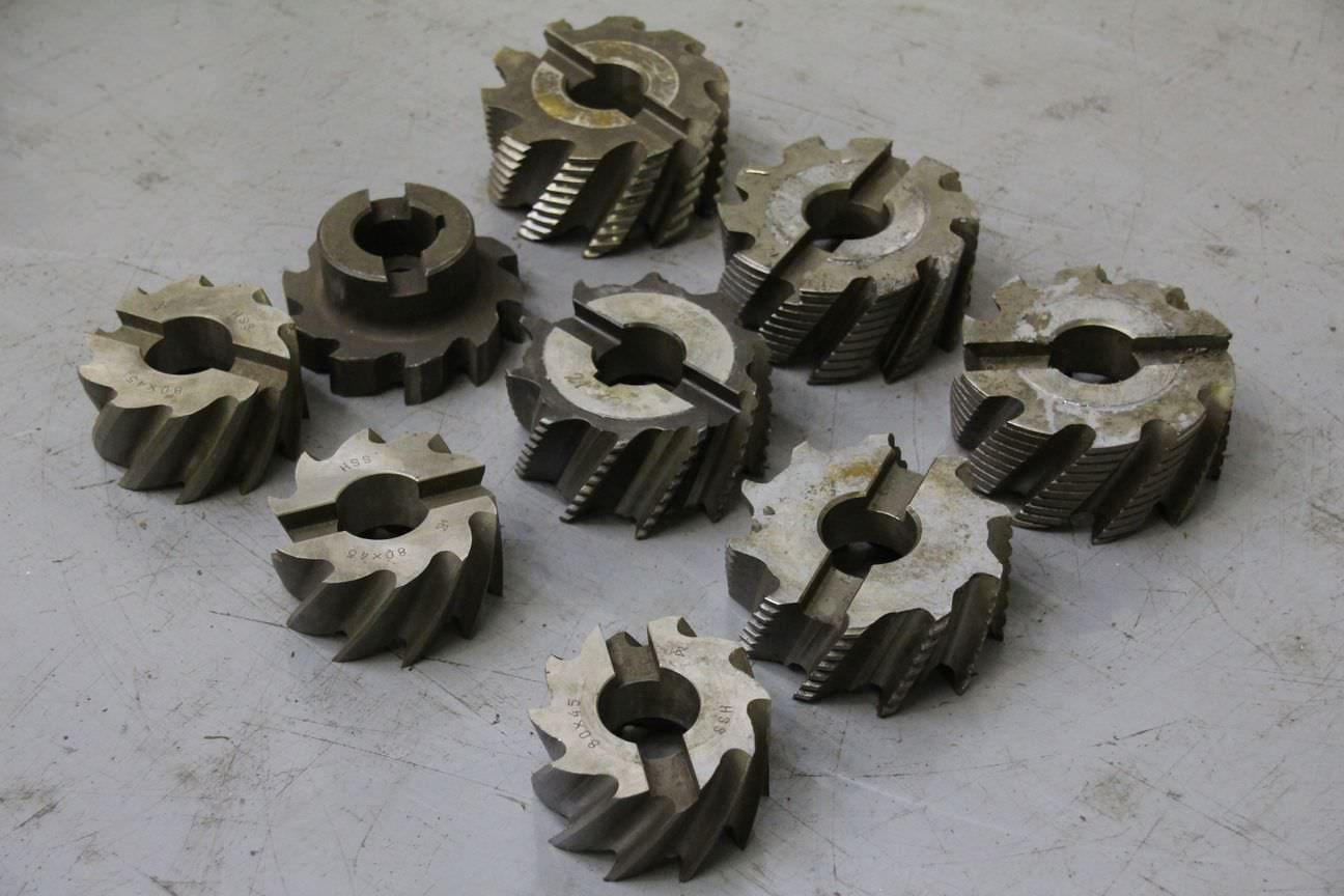 Shell end mills, shell mills, milling cutters-Number: 9 pieces finishing cutter/roughing cutter-Socket: Ø 32 mm-Various diameters: 76-100 mm-Different producers-Price: complete-Weight: 13.3 kg