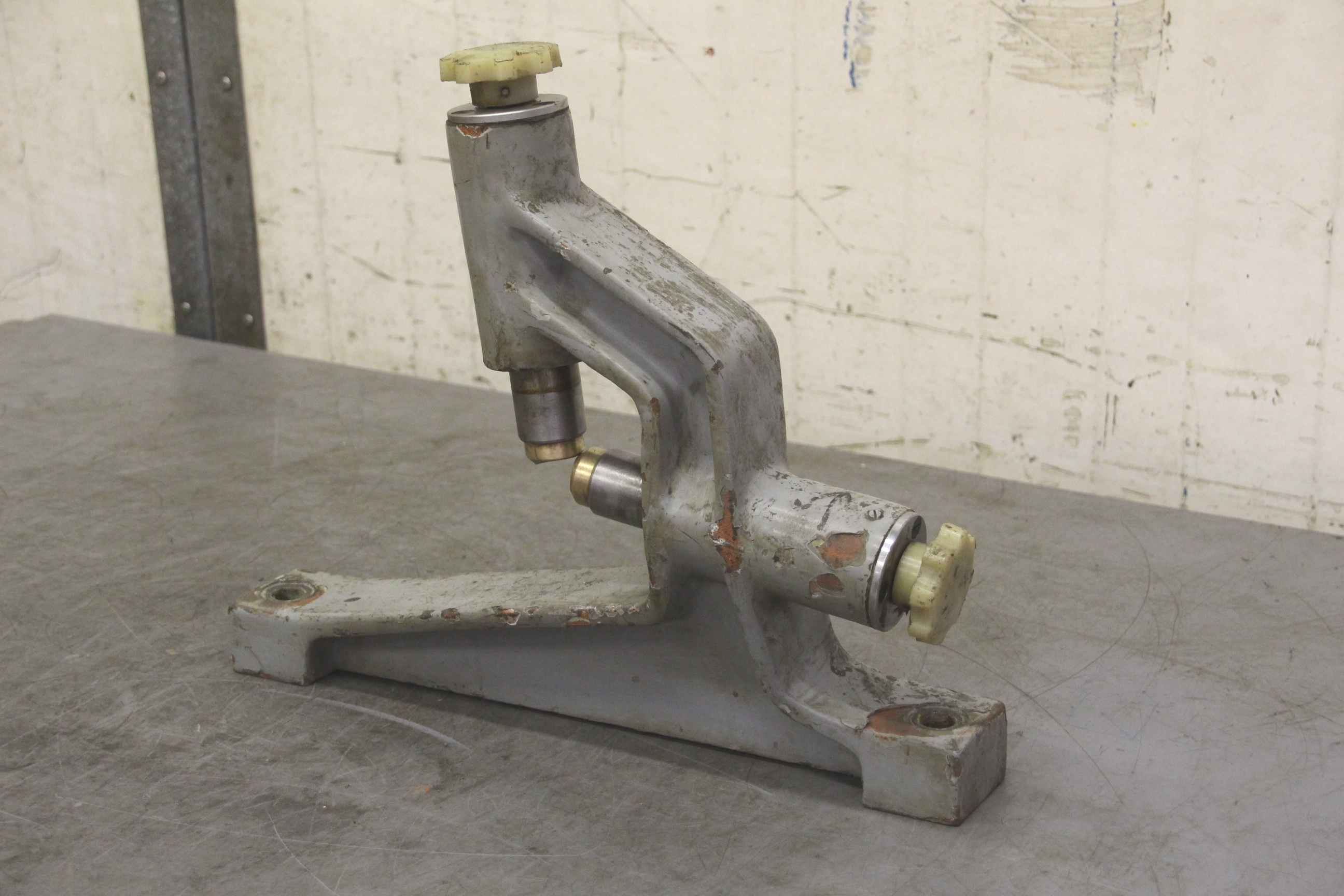 Moving steady rest, moving steady rest, steady rest, lynette-Max. Passage: Ø 140 mm-Plating: brass-lower quill is missing-Tip height: 230 mm-Drawings with the photos-Price: per piece-Number: 1x available-Dimensions: 510/480/H110 mm-Weight: 22 kg
