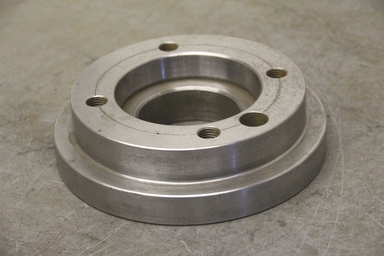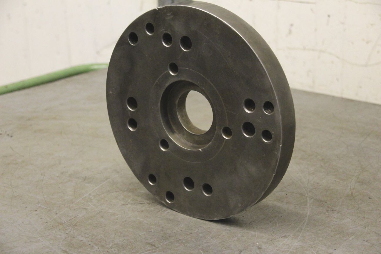 Chuck flange, flange mount, lathe chuck flange, driving flange-Chuck flange for: three-jaw chuck, four-jaw chuck, face plate-Outer diameter: 200 mm-Hole circle: Ø 132/M16-Price: per piece-Number: 3 pieces-Dimensions: Ø 200/H51 mm-Weight: 7.9 kg