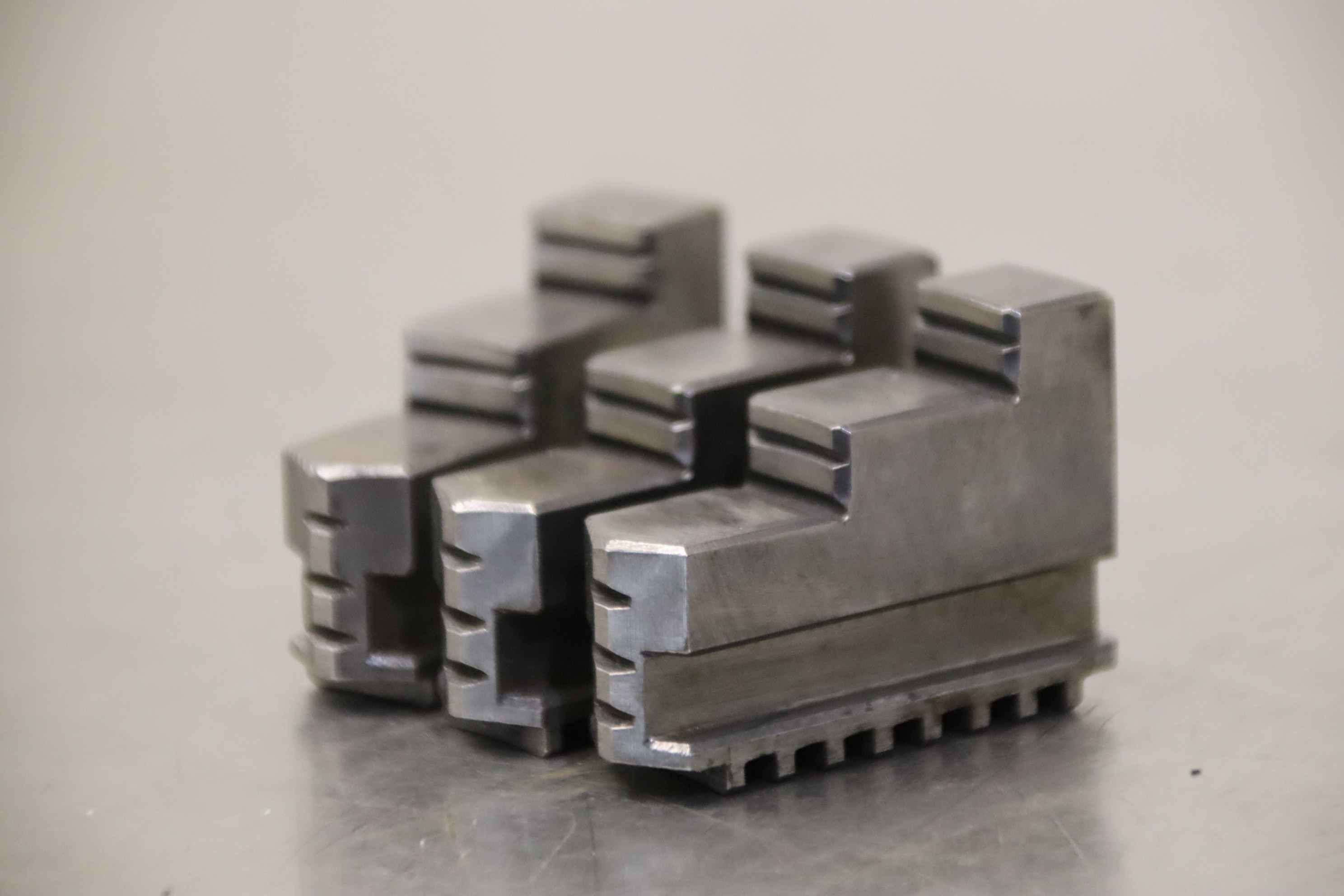 Interchangeable jaws, top jaws, three-jaw chucks, segment jaws, clamping jaws, step block jaws, step top jaws, block jaws, base jaws, 4-jaw set-Top jaws: 4-piece hard rotating jaw set-Jaw width: 21 mm-Dimensions: see photo technical. drawing-Quantity: 1 set of interchangeable jaws available-Total dimensions: 76/85/H60 mm-Total weight: 1.8 kg