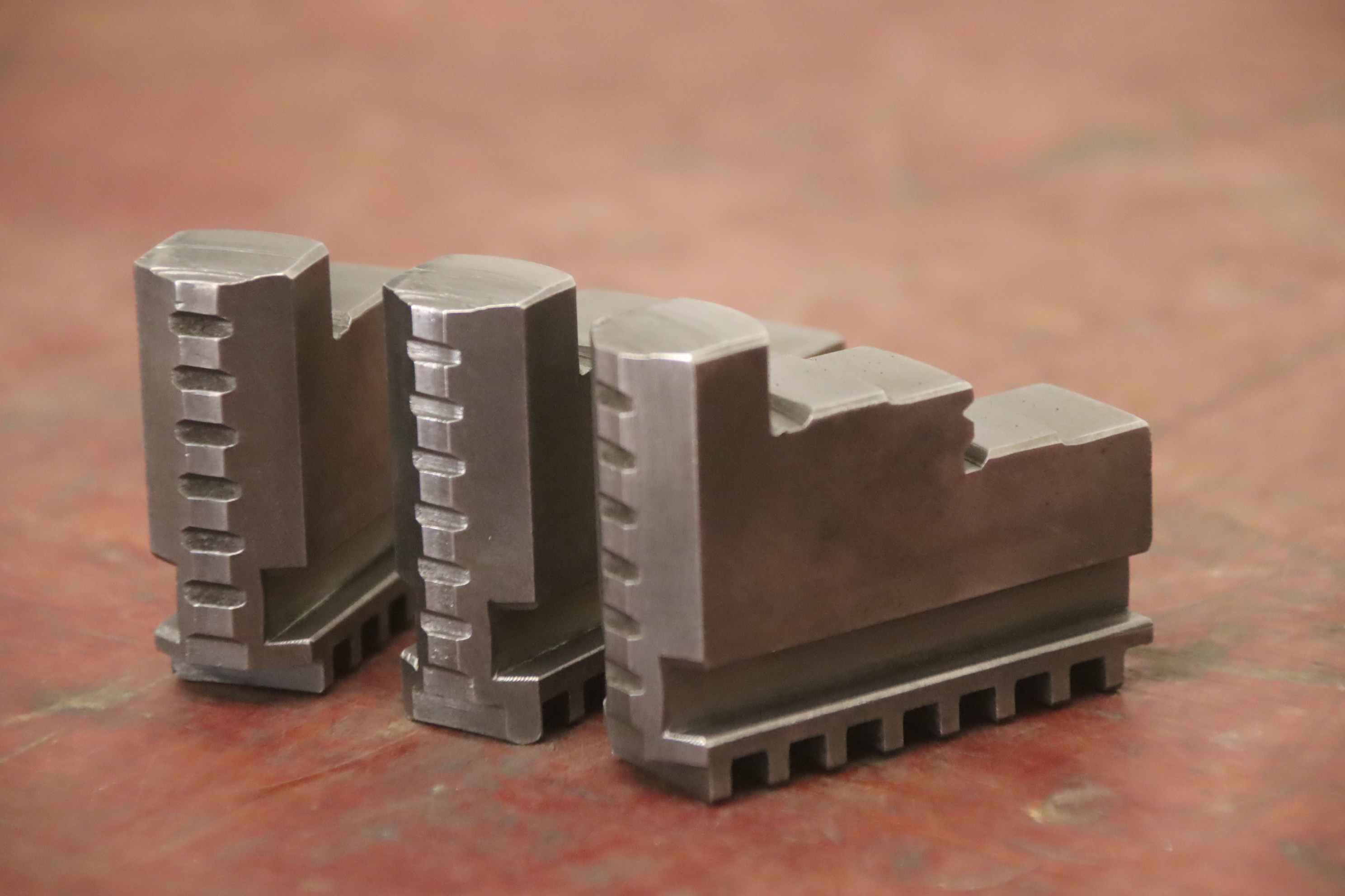 Interchangeable jaws, top jaws, three-jaw chucks, segment jaws, clamping jaws, step block jaws, step top jaws, block jaws, base jaws-Top jaws: Jaw set for three-jaw lathe chuck, hard-Jaw width: 20 mm-Dimensions: see photo technical drawing-Total dimensions: 70/60/H55 mm-Total weight: 1.1 kg