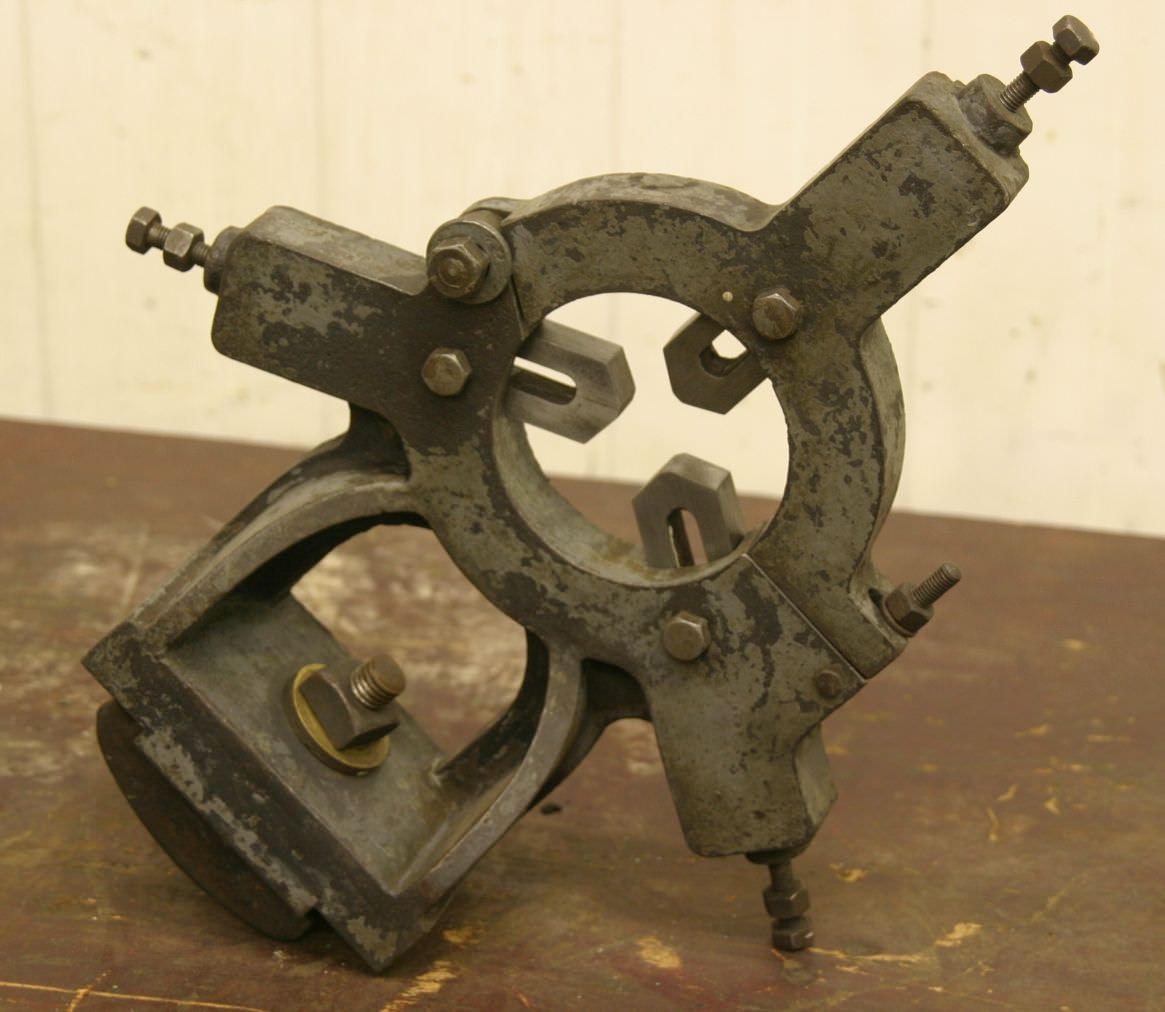 Moving steady rest, moving steady rest, steady rest, lynette -Max. Passage: Ø 80 mm -Edition: gunmetal -Hole spacing: 90 mm -Tip height: 165 mm -Drawings with the photos -Dimensions: 210/190/H330 mm -Weight: 8 kg