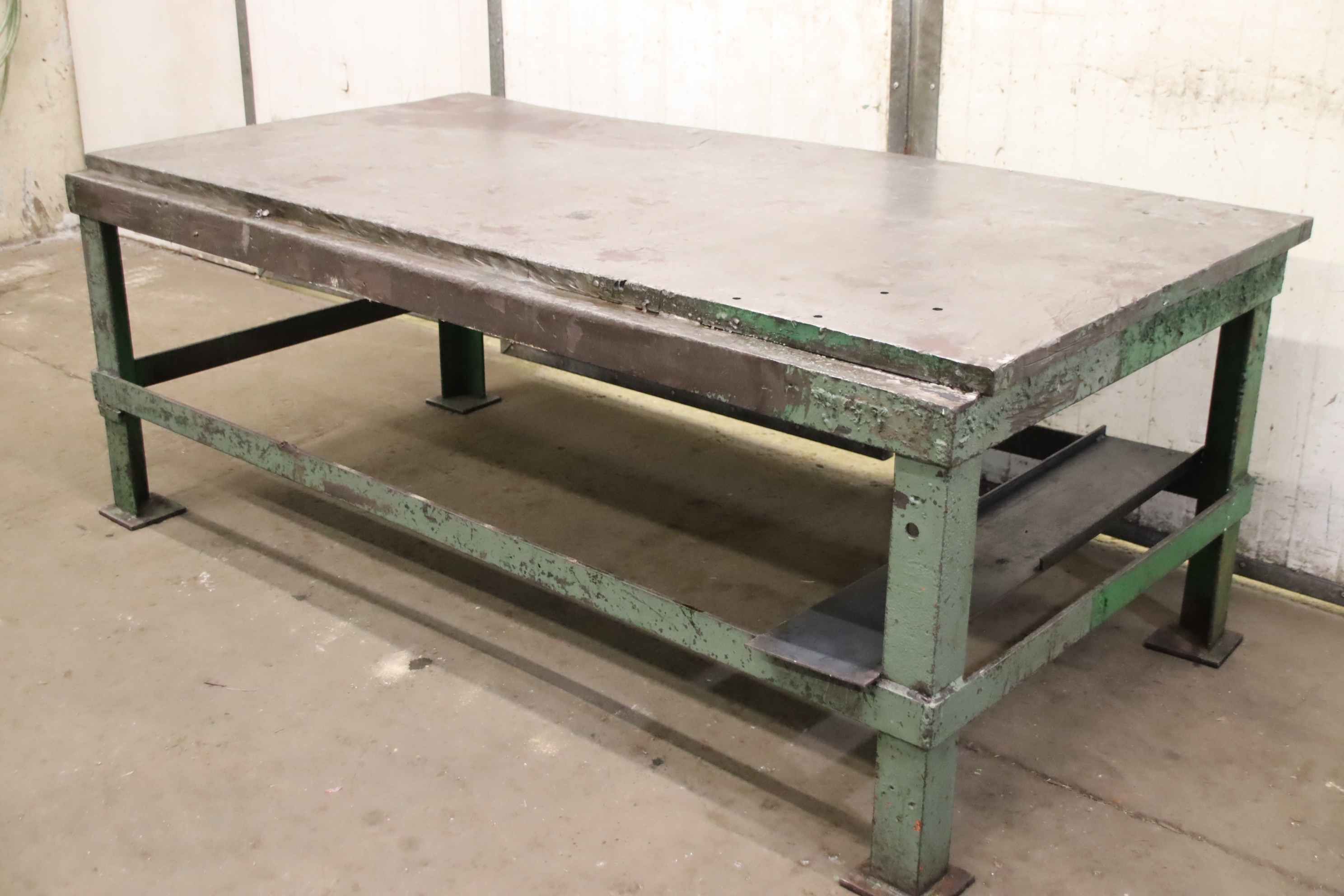 clamping plate, marking plate, measuring plate, measuring table, welding table, welding table, straightening plate, marking plate, straightening table -Flatness. see photos, (straight edge not included) -Clamping plate: with base frame -Clamping surface: 2000 x 1000 mm -Table height: 765 mm -Plate thickness: 38 mm -Transport dimensions: 2020/1075/H765 mm -Weight: 950 kg