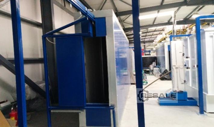 Otwarty stojak lakierniczy 2x2,1x2,2 Nadmiar natrysku podczas proszkowania jest absorbowany przez jednostkę odciągową. Stojak do natryskiwania proszku jest dostarczany na rolkach, dzięki czemu jest mobilny. - System odciągowy wyposażony jest w pojemnik na proszek o pojemności 60 l (na kółkach). - W 1. stopniu w ekstraktorze znajdują się 4 filtry. - Nad kabiną znajduje się filtr absolutny. 1. Wymiary stojaka na proszek: szerokość 2.000 mm Głębokość: 2 100 mm Wysokość 2 200 mm 2. Wentylator 1 szt. 6 000 m³/h Silnik elektryczny 3,0 kW 3. Filtr Φ 325x600 4 szt Wkłady filtracyjne typu 4. Zawory elektromagnetyczne 2 szt. 1" "Turbo" Włochy 5. Filtr absolutny 1 szt. typ ...