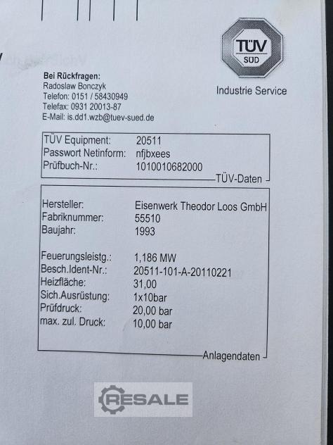 Typ maszyny: Kocioł parowy 1600 kg/h