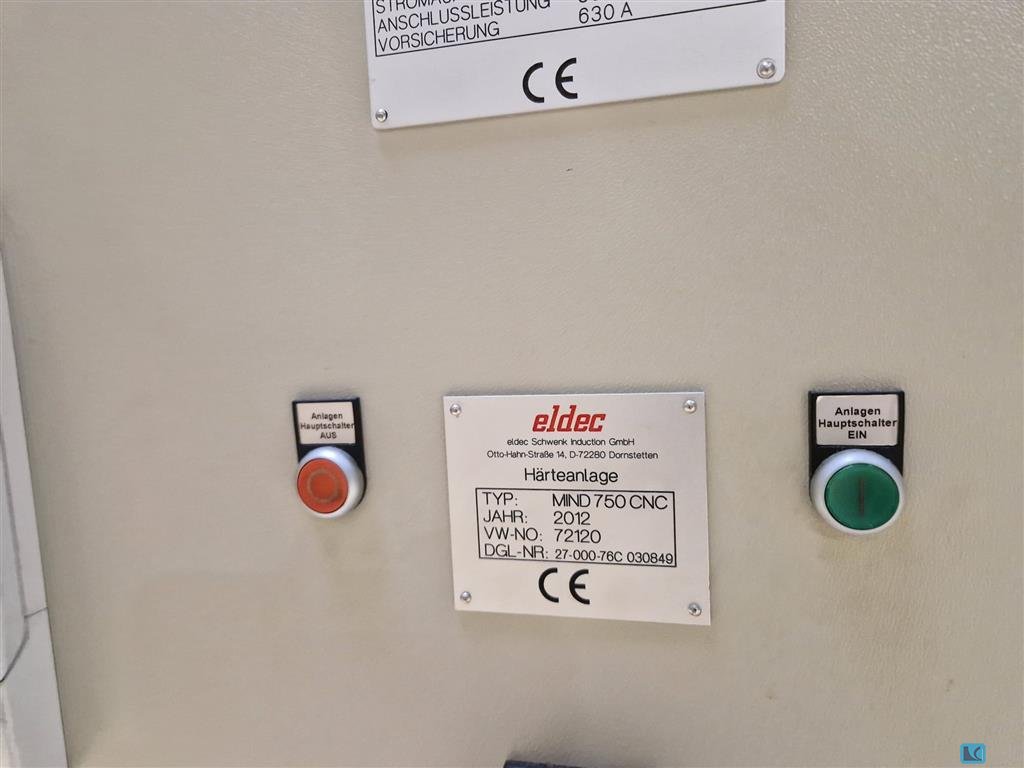total power requirement:413 kWInduction hardening machine Rotary table Eldec: Z (servo drive 750 mm Y (electromechanical) 300 mmX (electromechanical) 200 mmMaximum part diameter 600 mmMaximum workpiece weight 500 kg High frequency generator type HFG 200 Medium frequency generator type MFG 30