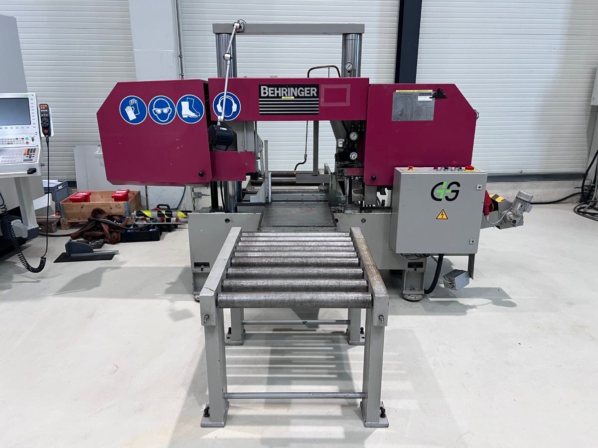 Behringer HBP 430Year of manuf. : 1990 ____________Description:Technical Data:Cutting speed (stepless):17-110 m/minEquipment/Accessory:Rawmaterialfeed:Roller conveyor, additionalFinishedpart removal:Delivery tableChipmanagement:ChipconveyorCoolantmanagement:Coolant pumpBandsawcleaning:Wire brushFurther Equipment:Bundle tension