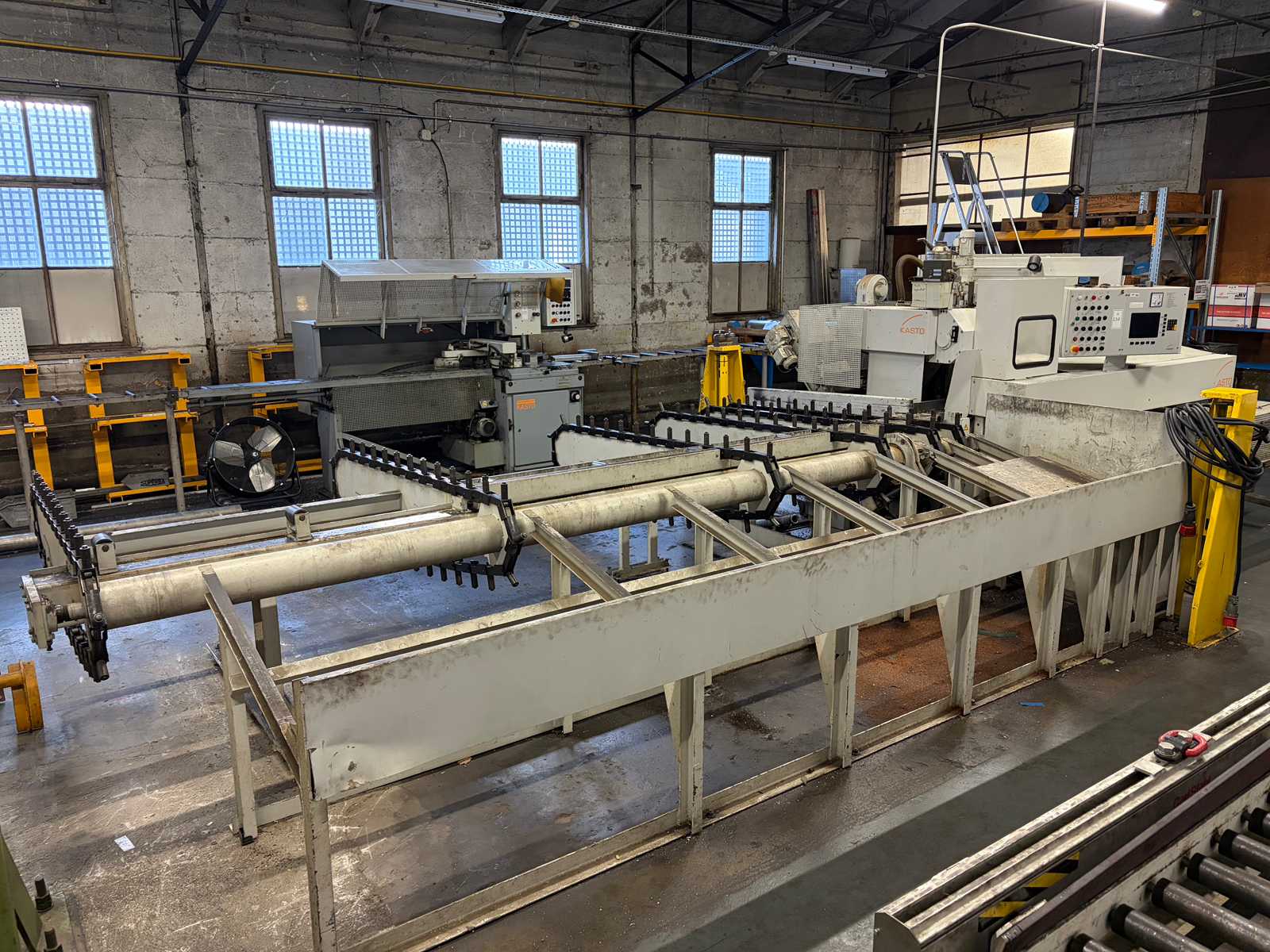 : neu : ca. 14 - 16 Wochen ab Auf : Türkei : 104600 €: 1976.94 €: Doppelsäulenführung : 10430x54x1,6 mm: 20-100 m/min: 750 mm: 1300x700 mm: rechteck 850 x 750 mm : rechteck 570 x 750 mm : rechteck 850 x 750 mm : 930 mm: 4 kW: 11 kW: 0.12 kW: 5500 mm: 2280 mm: 3400 mm: 8500 kgHydraulic viceDigital display for angle indicationHydraulic saw arm clampingManual saw arm rotationContinuously adjustable saw arm lowering speedAutomatic saw frame lifting after cuttingSensitive cutting pressure regulation depending on material propertiesHydromechanical blade tension readable via pressure gaugeMobile control panelHeavy-duty, helical-toothed conical gearDriven chip brushBlade guidance via carbide plates and rollersAutomatic blade breakage protectionCoolant systemHydraulic saw frame liftingOperating instructions in GERMAN or ENGLISHOPTIONS:Roller tables and band saw blades on requestThe data fo ...