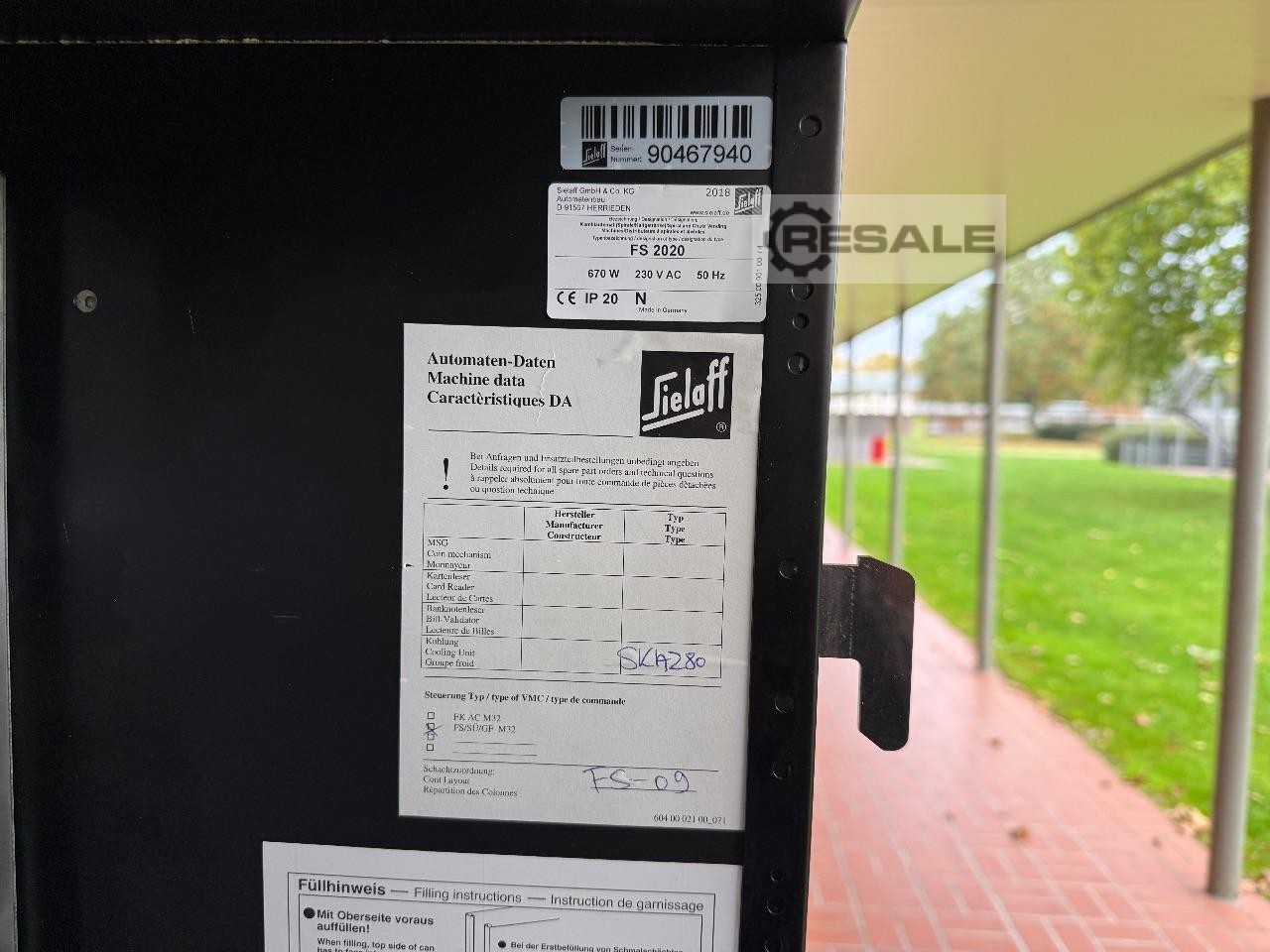 Zewnętrzny automat do sprzedaży zimnych napojów na monety SIELAFF FS 2020