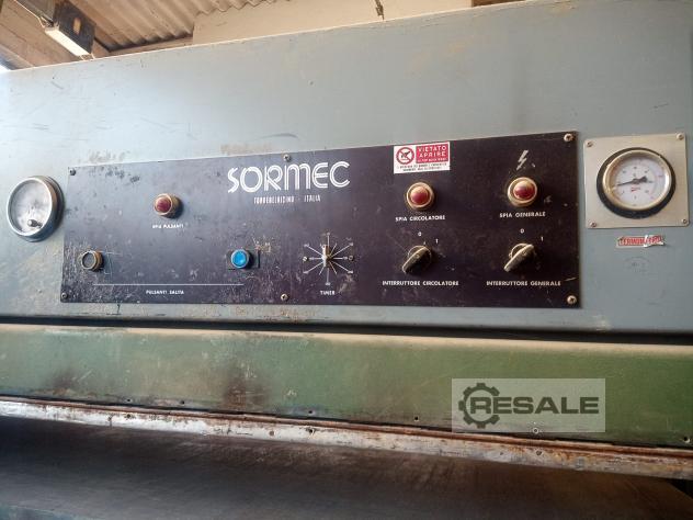 Tłoczka termiczna SORMEC z: - Złożone górne części 3000x1300mm - 2 półki pośrednie / 3 przedziały ładunkowe - 6 dolnych tłoków hydraulicznych, skok 600 m - Hydrauliczne tłoki do płyt blokowych zamontowane po stronie 1300mm - z elektrycznym bojlerem na wodę Maszyna niezgodna z ...