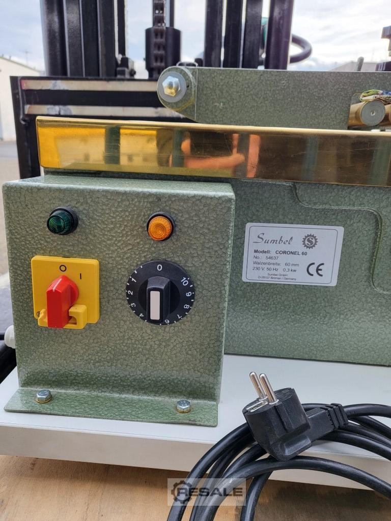 Maszyna do klejenia Sumbel Coronel 60; stan jak J6342937 nowy; szerokość robocza 60 mm; stosowany do kleju na gorąco i zimno; Maszyna stołowa.