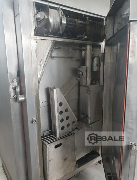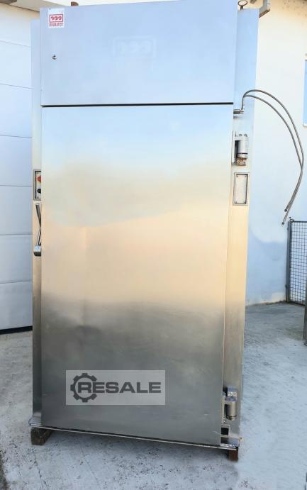 Typ maszyny: Komora dymna Bastra na 1 wózek Ogrzewanie elektryczne: 28 kW Regulowana cyrkulacja powietrza Pneumatycznie sterowane świeże powietrze, powietrze wywiewane i klapa dymowa Czyszczenie: czyszczenie pianą Podawanie dymu: na życzenie klienta Materiał do palenia: zrębki drzewne Bez systemu dopalania Wymiary montażowe maszyny w cm: Szerokość: 175 Długość:120 Wysokość: 210 Wymiary wózka w cm: wysokość 100100200 Czas dostawy: 30 dni roboczych po wpłacie zaliczki