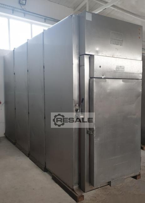 Maurer - Komora dymna na 2 wózki Ogrzewanie elektryczne 48 KW Regulowana cyrkulacja powietrza Pneumatycznie sterowane świeże powietrze, powietrze wywiewane i klapa dymowa Czyszczenie: czyszczenie pianą Podawanie dymu: GOLIAT II Bez systemu dopalania Wymiary montażowe maszyny w cm: Szerokość: 158 Długość: 250 Wysokość: 250 Wymiary wózka w cm: 100100200 Czas dostawy: 30 dni roboczych po wpłacie zaliczki