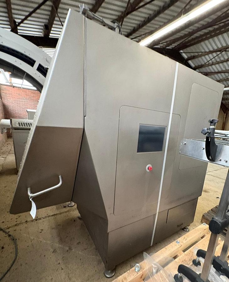 Rühle SR3 cube and strip cutter (built in 2013), The Rühle SR3 is a fully automatic high-performance cube and strip cutter for industrial use in food processing. The machine stands out with precise cut quality, high throughput, and maximum flexibility for a wide range of products., Whether meat, bacon, cheese, fruit or vegetables – the SR3 processes almost all common raw materials reliably and evenly into cubes, strips or slices., Due to automatic loading, modern control technology, and quick-change system for cutting gates, the machine is ideal for use in production lines with high requirements for efficiency and product quality., Highlights, - Fully automatic high-performance machine, - Universally usable (meat, cheese, vegetables, fruit), - Precise cut images with minimal fracture proportion, - Quick-change system for cutting fences, - Touch control for simple operation, - Mobile ...