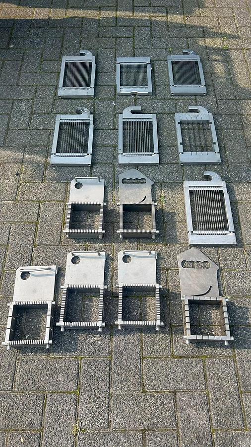 Cutter knife, dicer, multi-purpose cutter, slicer and portion cutter, cutter knife, cutter knife, dicer, bacon cutter, gate, cutting gate -Manufacturer: Holac, cutting blade for meat cutter multi-purpose cutter dicer -Type: various versions, see photos -Art.No.: 6x 2334850 / 3x 2334830 / 1x 2335190 thickness 1.6 / 1 / 2.7 mm -Price/Delivery: complete -Transport dimensions: 375/111/H20 mm -Weight: 1.6 kg