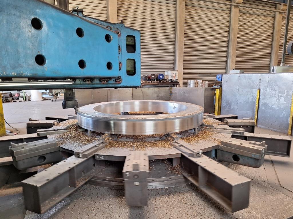 faceplate diameter: 4770 mmswing diameter: 10000 mmturning height: 3500 mmtable load: 100 tturning speeds: 40 U/mintable drive: 125 kWControl: Siemens type: 840 D Rest: 1 slide adjustment: 1421 mmram head dimension: 250x250 mminclination: +/-30 °live tooling: 16 Kwspindle taper ISO: 50 spindle ...