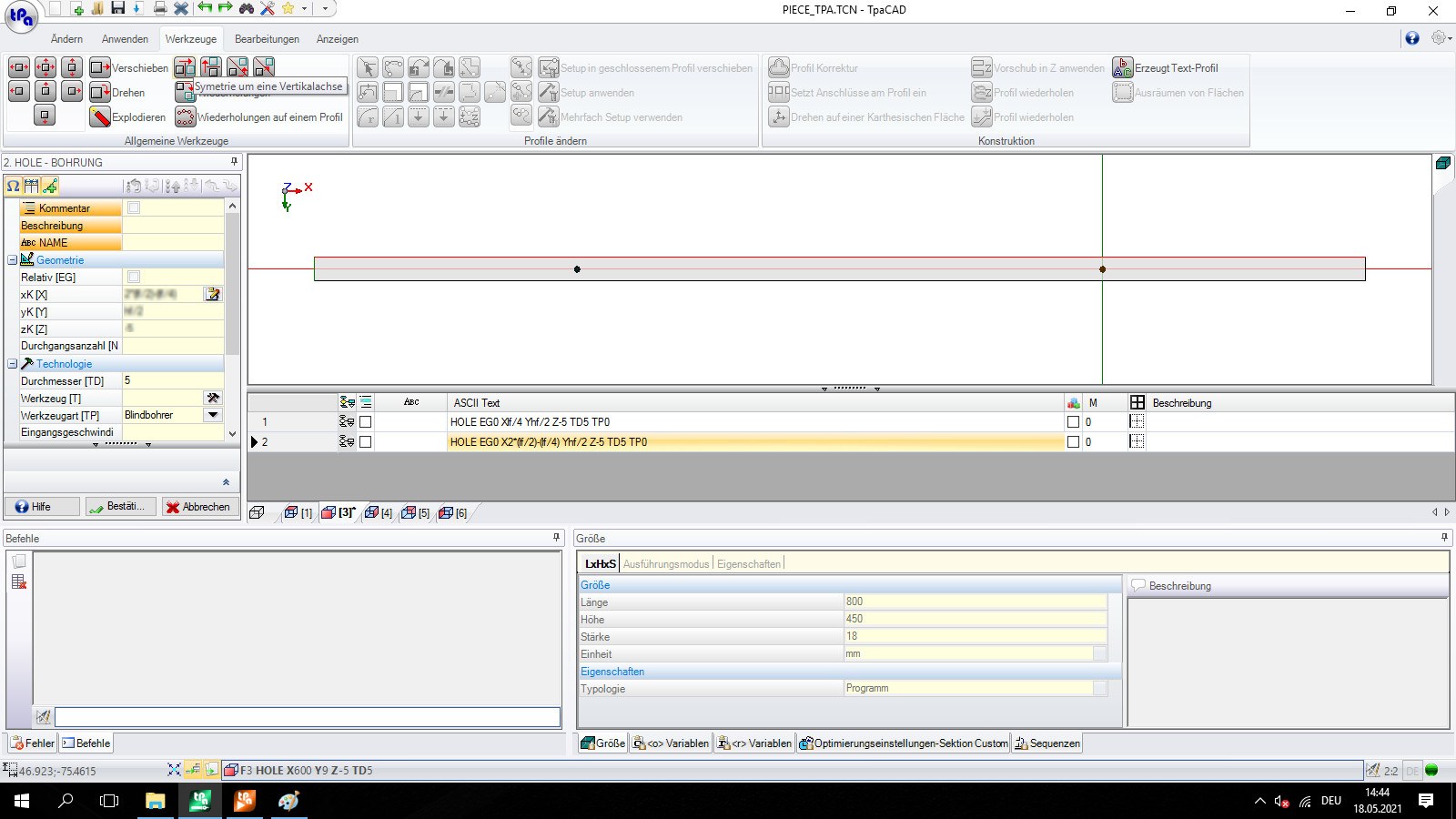 - The CAD Software shows the processings on a virtual workpiece