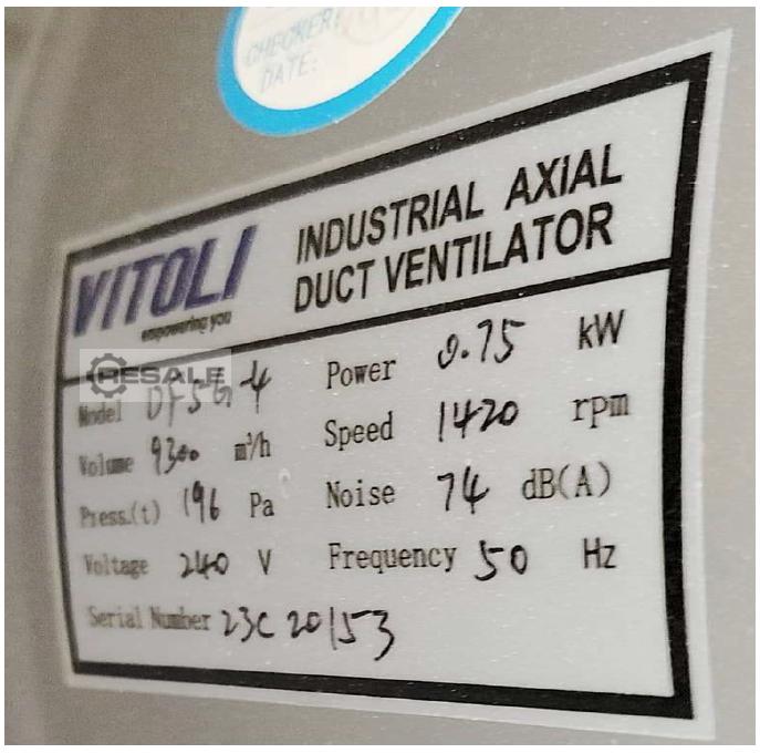 Typ maszyny: Przemysłowy wentylator kanałowy osiowy