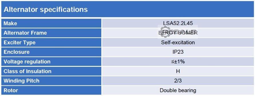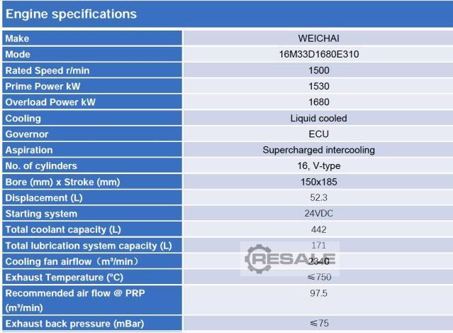 Rated capacity: 1100 KW Rated capacity in kVA: 1375 kVA Output voltage: 10500 V Generator gazu Weshai Baudouin