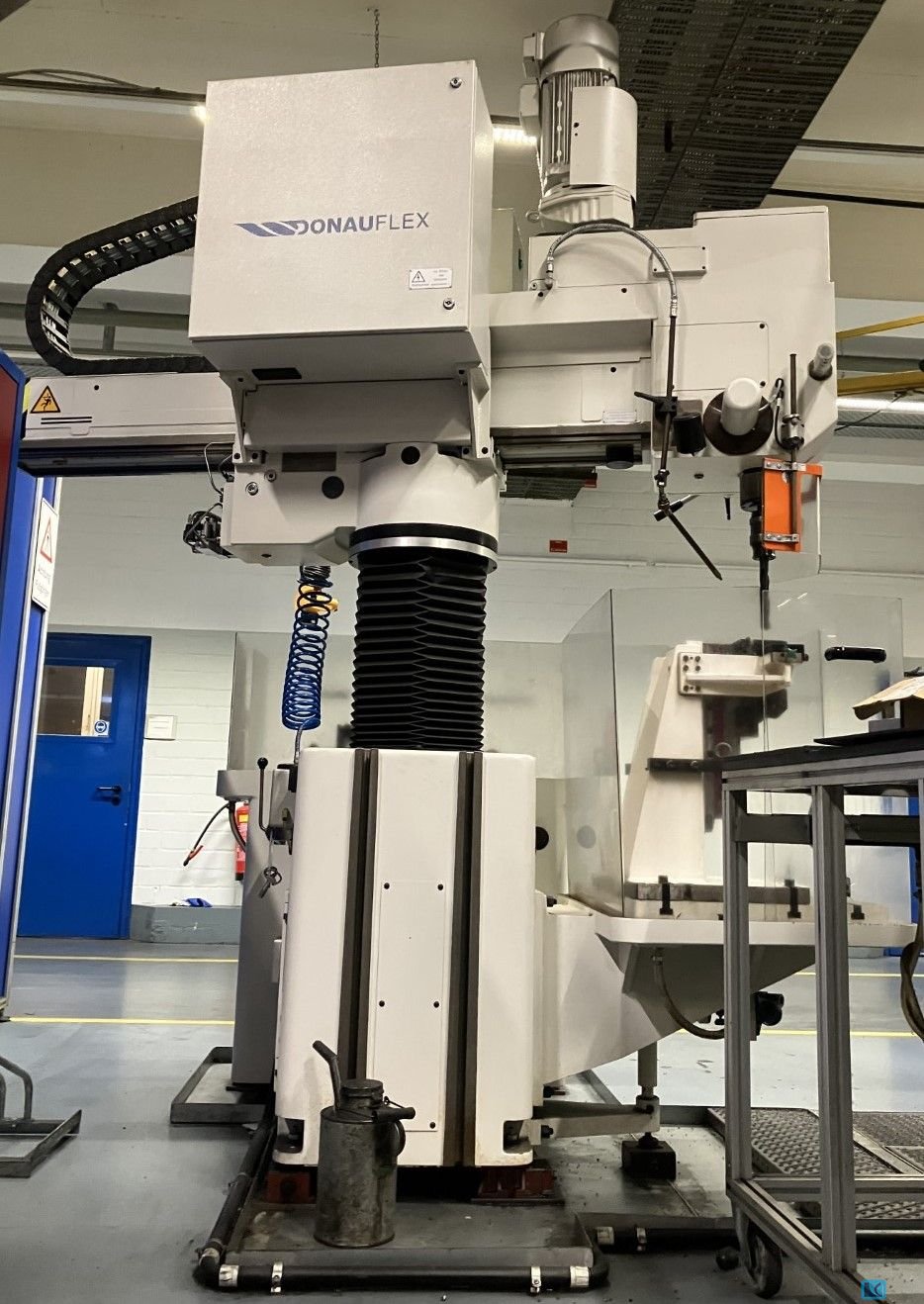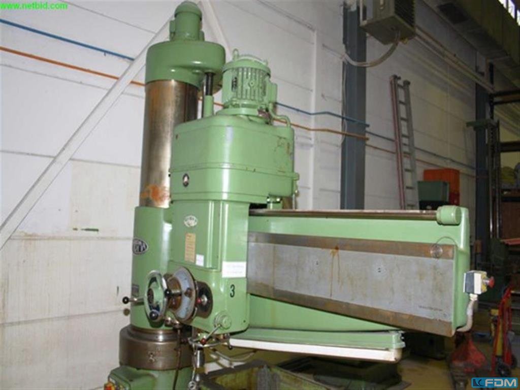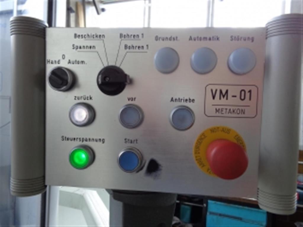 bore capacity in steel (diameter):100 mmmax. pitch circle:7000 mmnumber of spindles:2 bore spindle turning speed range:1 - 3000 U/minhigh speed spindle taper ISO:50 bore slide stroke:900 mmfeed speeds:1 - 6000 mm/minmax. workpiece weight:18000 kgtotal power requirement:125 kWdimensions of the machine ca.:13 x 11 x 5,1 mwith CNC SIEMENS 840 DWorkpiece clamping up to dia. 7000 mmThe machine is equipped with 2 drilling spindle supports and through spindle coolant (50 bar)both supports can drill simultaneously. Spindle taper SK 50, 2 stages 1 -600 rpm 1650 Nm and 1 - 3000 rpm. 300 NmChip conveyor and coolant device