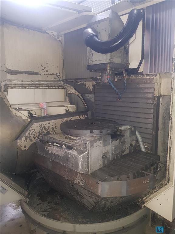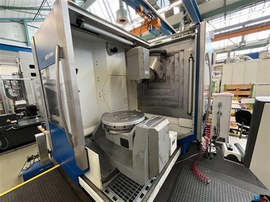 x-travel:1000 mmy-travel:1100 mmz-travel:810 mmcontrol:iTNC 530 HEIDENHAINturning speeds:18000 1/mintool taper:HSK 63 table surface area:1.000 x 800 mmmax. swing dia.:1350 mmmax. table load:1.000 kgtool magazin::273 Pos.rapid traverse:60 m/mintotal power requirement:86 kWweight of the machine ca.:18 tdimensions of the machine ca.:4,3 x 6 x 3,4 m5-axis simultan universal machining center,NC-rotary-table (C-axis) and B-axis (milling head),DDT-spindle for high torque (HT - max. 3000 rpm - 291/226Nm) and high speed (HS max. 18.000 rpm - 83/63Nm ),- internal coolant supply 50bar with chipconveyor and paperfilter,el. handwheel,oilmist suction,DCM collision control,Hours on counter:approx. 45.000h "machine on", approx. ca. 2.000h " HT-spindle on", approx. ca. 12.000h " HS-spindle on"NEW SPINDLE IN 09/2025 !