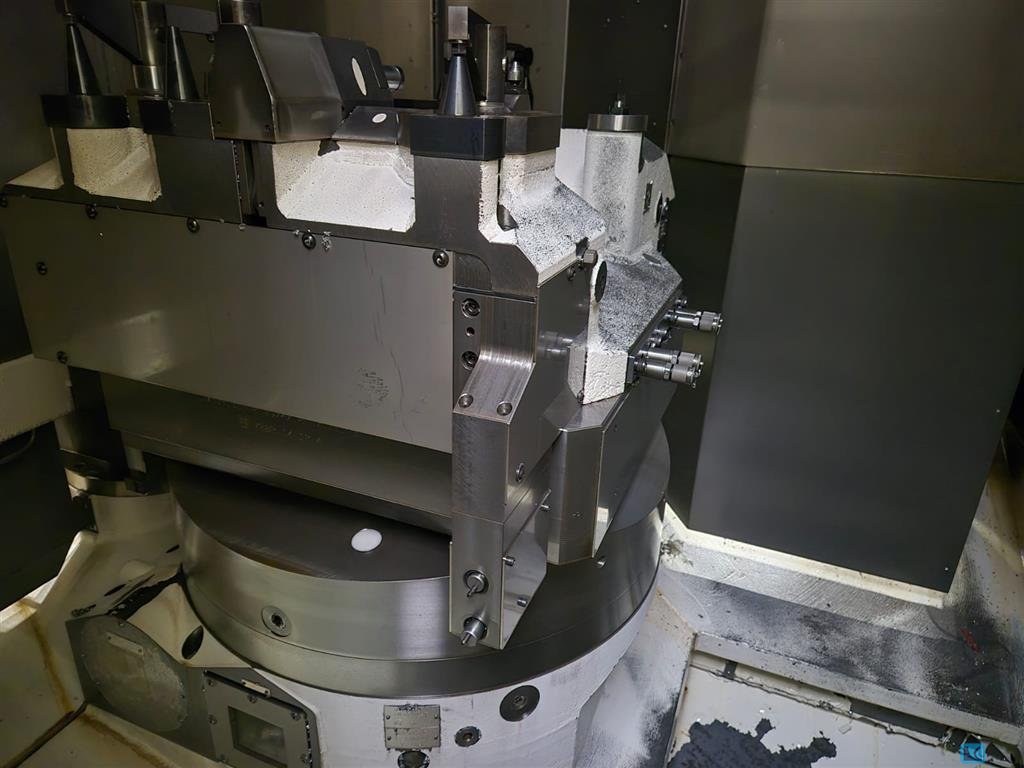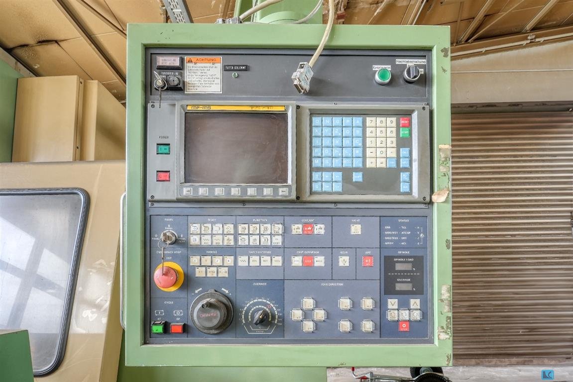 x-travel: 1135 mmy-travel: 1050 mmz-travel: 710 mm0: dia 1240 x 690 mmcontrol: Heidenhain TNC 640 : : 15000 min/-1: 35 kWtool taper: SK 40 work table:: table surface area: 1050 x 860 mmmax. table load: 2000 kg: : 30 pos.tool taper: SK 40 change-time chip to chip: 6 secfeeds:: : 40 m/minfeed speeds: 40000 mm/mintotal power requirement: - kWweight of the machine ca.: 18 tdimensions of the machine ca.: 5,1 x 3,99 x 3,4 m5-Axis Machine equipped with:- CNC Control Heidenhain TNC 640- universal Milling Head (B-Axis +30/-130°)- NC- rotary Table dia 800mm (C-Axis)- BMF coolant and filtration system. - electr. HandwheelThe data for this ad was created with ModulMWS - the software solution of LogoTech oHG.