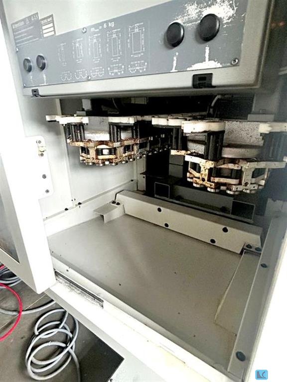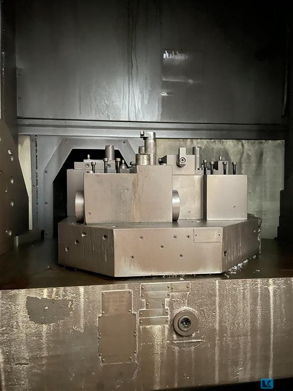 x-travel:800 mmy-travel:400 mmz-travel:350 mmtotal power requirement:44 kWweight of the machine ca.:8,8 tdimensions of the machine ca.:6,1 x 4,1 x 3,3 mtool taper:HSK63 number of spindle speeds:36-12.000 Number of tools:2 x 21 St.rotary table diameter:1340 mm