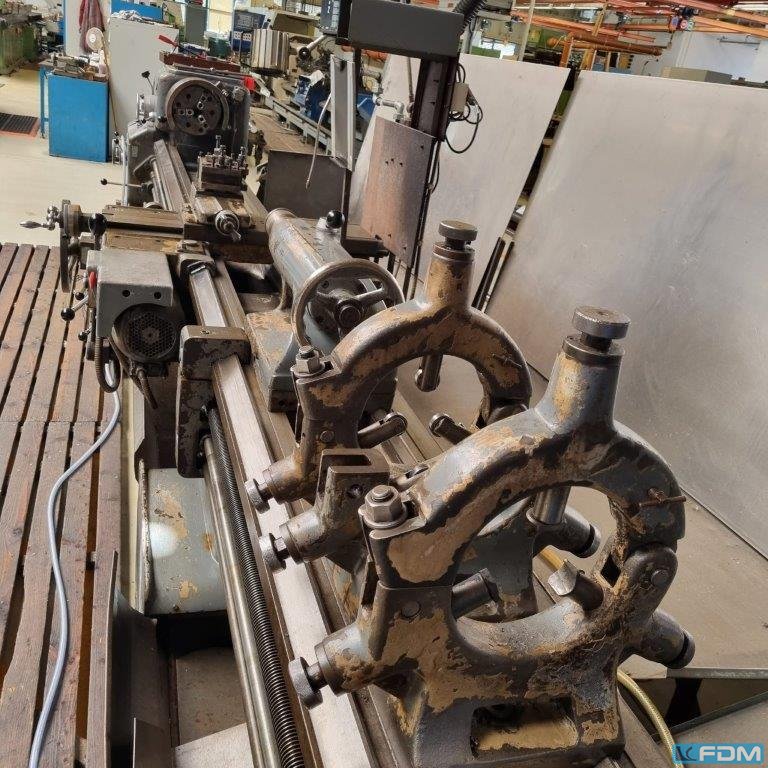 centre height: 450 mm centre distance: 6150 mm spindle bore: 140 mm turning diameter over bed: 900 mm turning diameter over slide: 660 mm spindle drive: 15 kW external dimensions: Breite 1750mm length: 9000 mm height: 1650 mm weight: 8000 kg spindle speed:: 11-500 UpM With a chuck, collet, and faceplate The data for this ad was created with ModulMWS - the software solution of LogoTech oHG.
