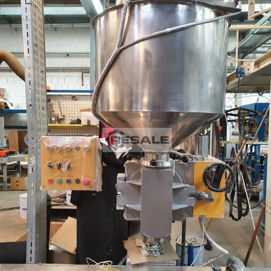 Linia do butelkowania De Vree Vreebase DUO2 do napełniania produktów pasty do worków zaworowych Wydajność do dokowania od 500 ml do 20l na skok tłoka Zbiornik magazynowy ze stali nierdzewnej automatyczny program czyszczenia całkowicie zbudowany na mobilnej ramie mobilny telefon komórkowy na zestawach kołowych kompaktowe wymiary 2,20 m x 1,60 m x 2,40 m (dł. x szer. x wys.) automatyczny przenośnik taśmowy automatyczne upuszczanie worków zupełnie nowy stan, został oddany do użytku tylko raz na krótki czas