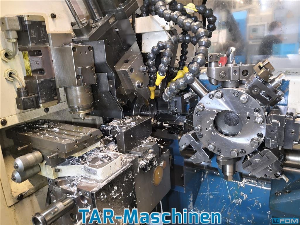 System CNC Control Traub TX 8D Oś C/ Narzędzia napędzane Podajnik prętów Stamag DN42 Kolekcjoner gotowych części Przenośnik wiórów Wewnętrzne chłodzenie cieczą Stan bardzo dobry Maksymalna średnica pręta 42 mm Długość toczenia 220 mm Uchwyt hydrauliczny Uchwyt- maks. średnica toczenia 140 mm Maksymalna średnica tokarki 140 mm Maksymalna średnica przewracania nad łóżkiem 390 mm Wytaczanie wrzeciona 42 mm Liczba głowic wieży - 3 -1 wieża 12 narzędzi -2. wieża 12 narzędzi -3. wieża 4 narzędzie Uchwyty narzędziowe VDI 30 Przesuw osi X 200 mm Przesuw osi Z 300 mm Prędkość wrzeciona 5600 obr./min Maksymalna długość pręta 4200 mm Max. pręty robocze w śred. Całkowita moc 34 kW Osłona blokująca Wymiary ogółem: 7400x1900x2400 mm Waga 4500 kg
