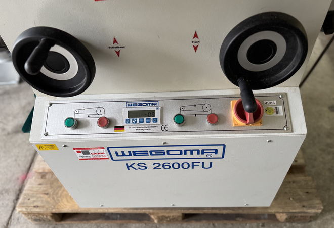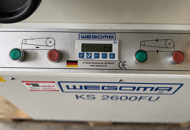Table saw, aluminum profile saw -2x saw: Wegoma TS 250 -Fixed cutting distance: approx. 450 mm -Saws: individually or simultaneously controllable -with: foot switch -Saw blade: Ø 250 mm -Voltage: 220/380 V -Saw motor: 0.75 kW -Dimensions: 850/790/H1660 mm -Weight: 234 kg