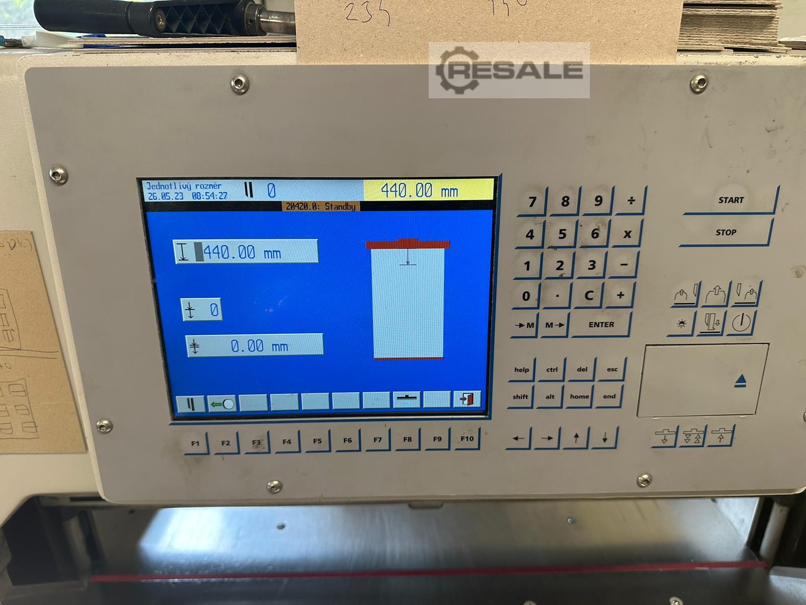 Przecinarki 2007 szerokość 115 cm z monitorem Ekran dotykowy Interfejsy USB Kompatybilny z CIP3 + CIP4 Interfejs Ethernet Pozycjonowanie siodełka za pomocą joysticka ergonomicznie rozmieszczone Obsługa oburęczna Funkcja zatrzymania wiązki prasowej programowalna siła nacisku Automatyczne tłoczenie Kurtyna świetlna bezpieczeństwa Osłona z pleksi na tylnym stole powierzchnia stołu ze stali nierdzewnej stół powietrzny boczny stół powietrzny w produkcji dostępne: od zaraz lokalizacja: Niemcy